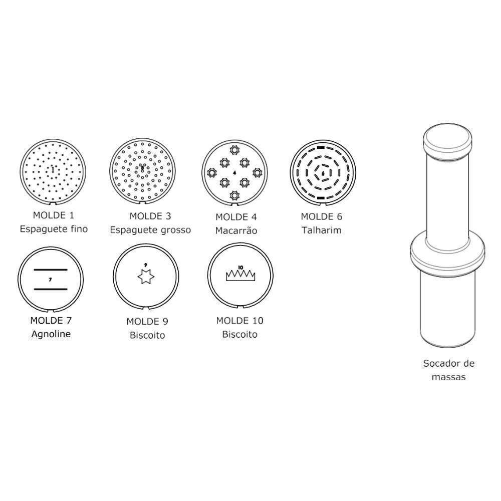 - Capacidade para produzir até 12 kg de macarrão e 10kg de espaghetti por hora