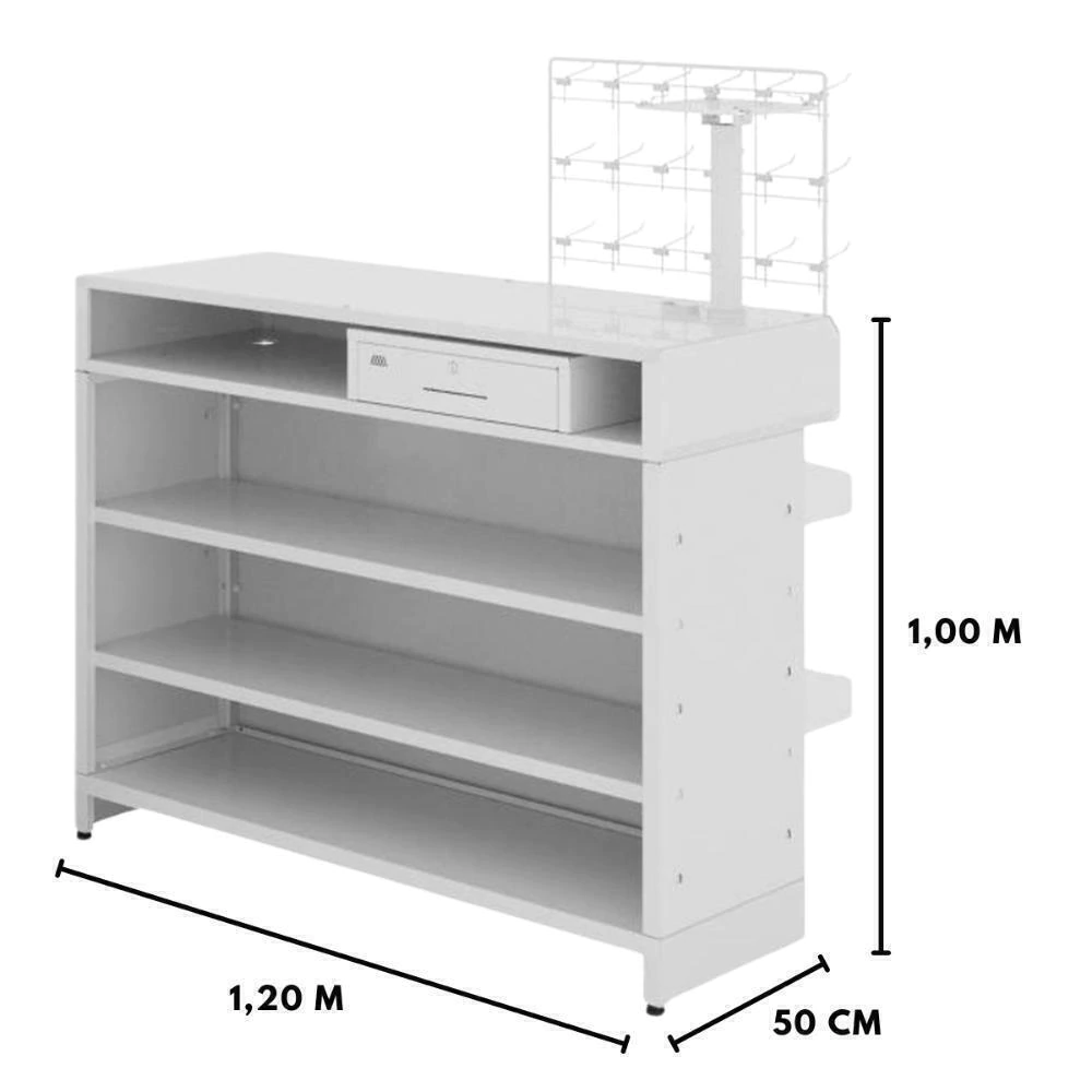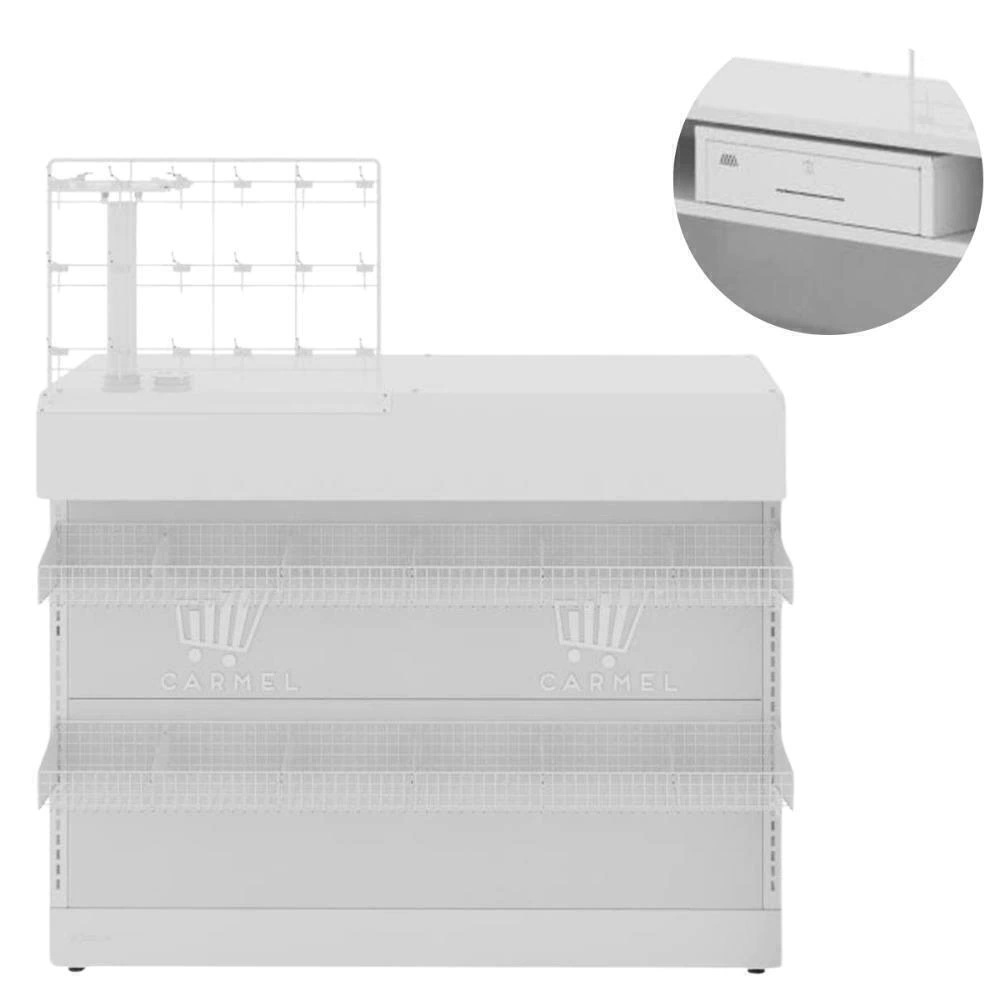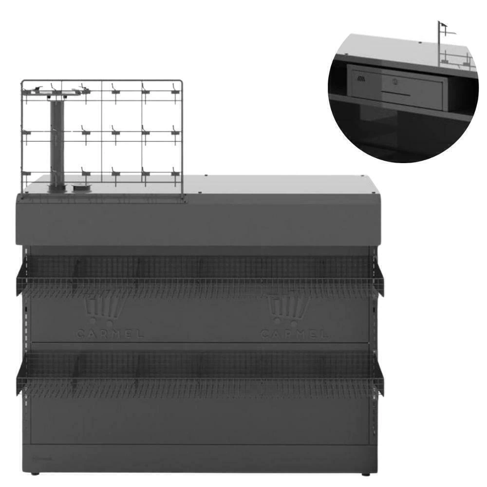 Alinha conforto para o usuário a uma exposição eficiente de produtos, visando a melhor experiência para cliente e vendedor, desenvolvido para resistir aos mais variados cenários, acompanha em sua estrutural frontal 2 cestos com 5 divisores cada, 1 anteparo na base, porta monitor e grade expositora para encartelados com 18 gancheiras. Possui 3 bandejas de aço na parte interna e gaveta inclusa sem porta dinheiro.