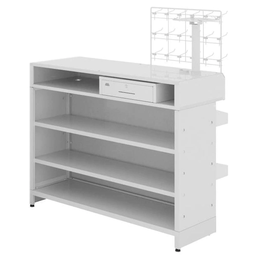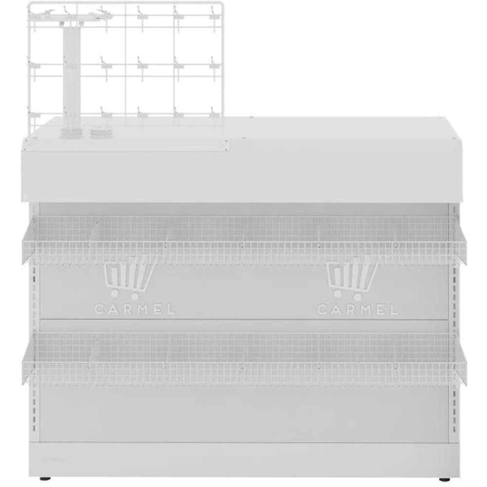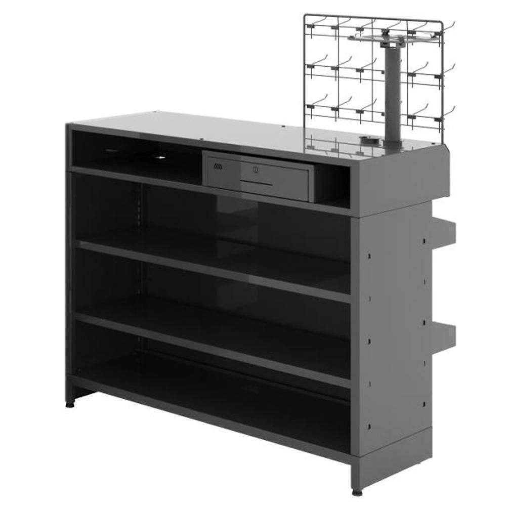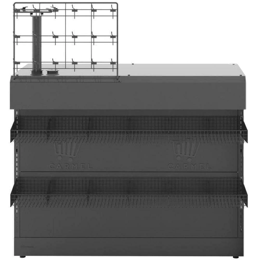 Alinha conforto para o usuário a uma exposição eficiente de produtos, visando a melhor experiência para cliente e vendedor, desenvolvido para resistir aos mais variados cenários, acompanha em sua estrutural frontal 2 cestos com 5 divisores cada, 1 anteparo na base, porta monitor e grade expositora para encartelados com 18 gancheiras. Possui 3 bandejas de aço na parte interna e gaveta inclusa sem porta dinheiro.
