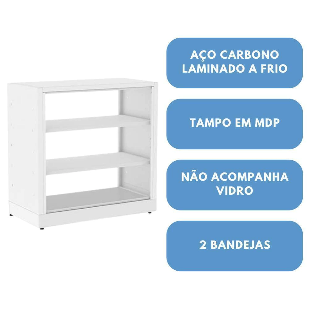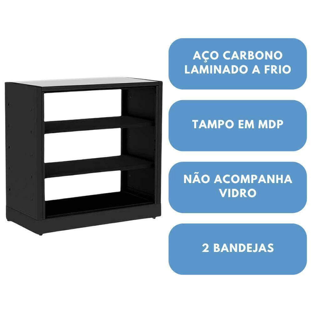 Alinhando conforto para o usuário a uma exposição eficiente de produtos e visando a melhor experiência para cliente e vendedor, o Balcão Comercial Aberto pode ser usado com frente de vidro, permitindo uma melhor visualização dos produtos. Possui tampo em MDP e 2 bandejas em aço.