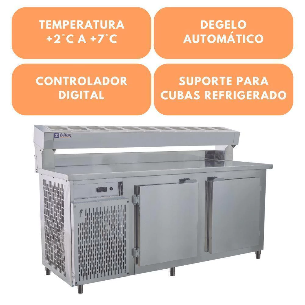 O balcão de serviço condimentador da Frilux é ideal para conservação e refrigeração de bebidas, frios, condimentos refrigerados e alimentos em geral.