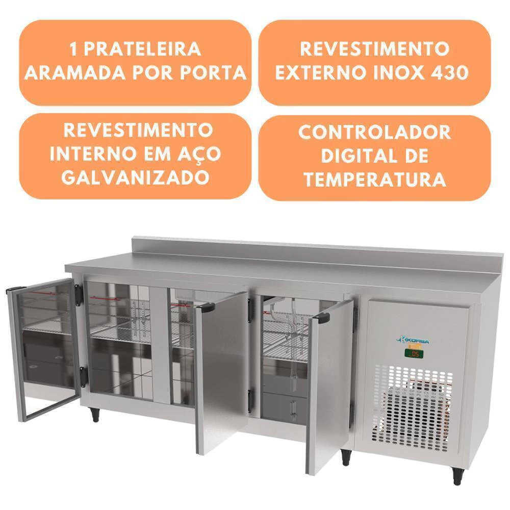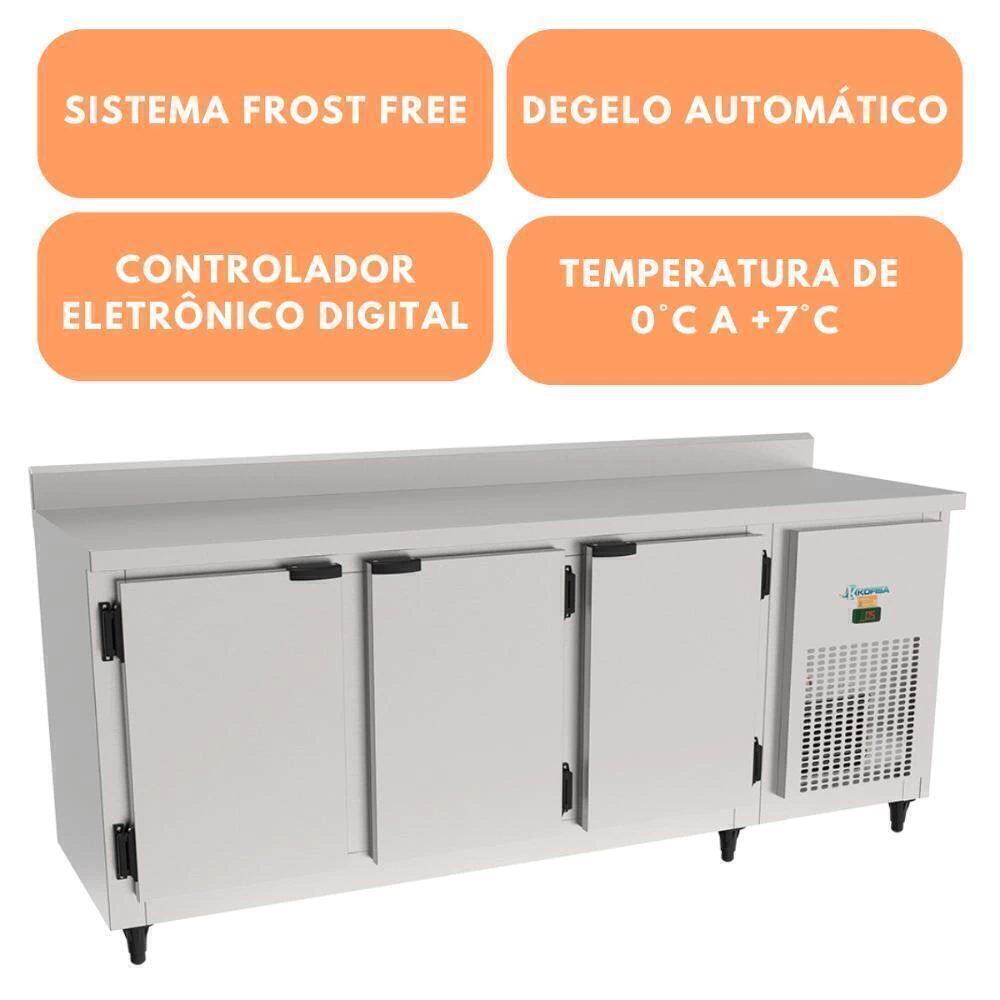Balcão Serviço Encosto Inox Escovado 3 Portas KBSC-200D - Kofisa