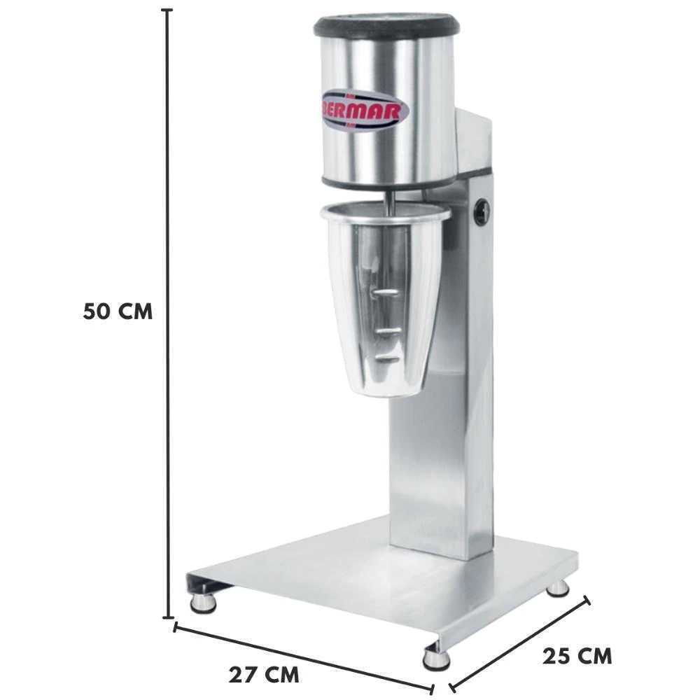 Batedor de Milk Shake profissional da Bermar, esse batedor possui um potente e resistente motor de 500 W que te ajudar a bater sorvete expresso e sorvete de balde, que são mais duros. Possui estrutura confeccionada em aço inoxidável 430 e copo em alumínio repuxado e polido com 3 níveis: 100 ml, 250 ml e 450 ml.