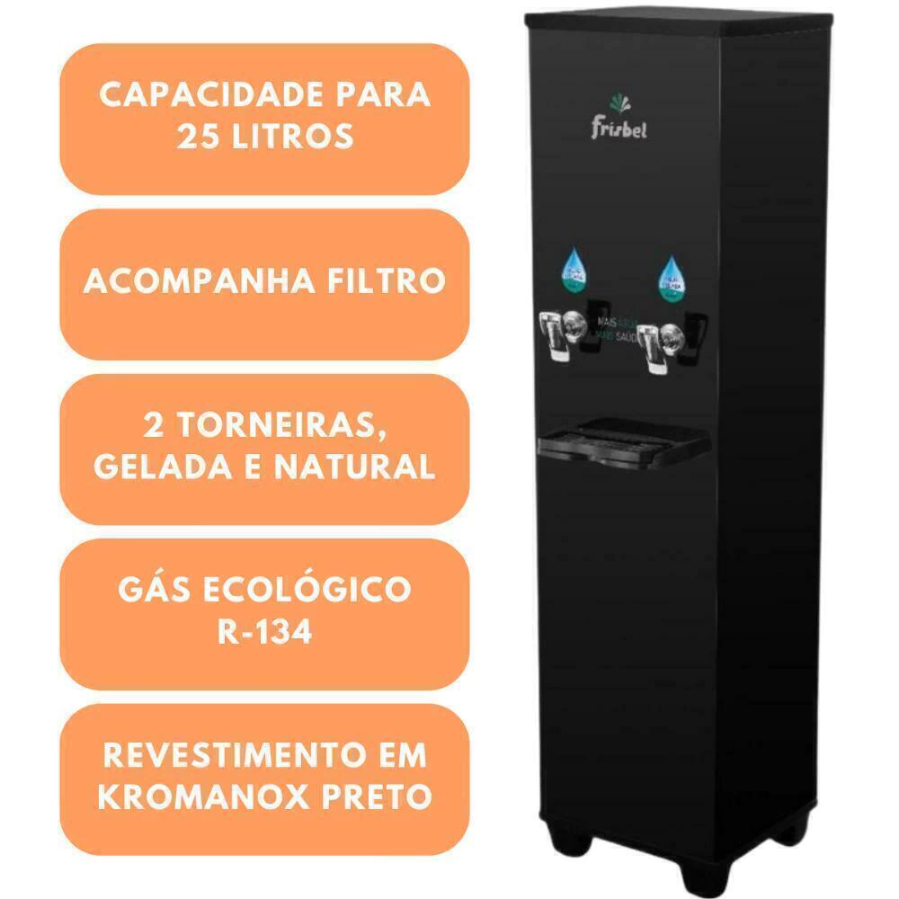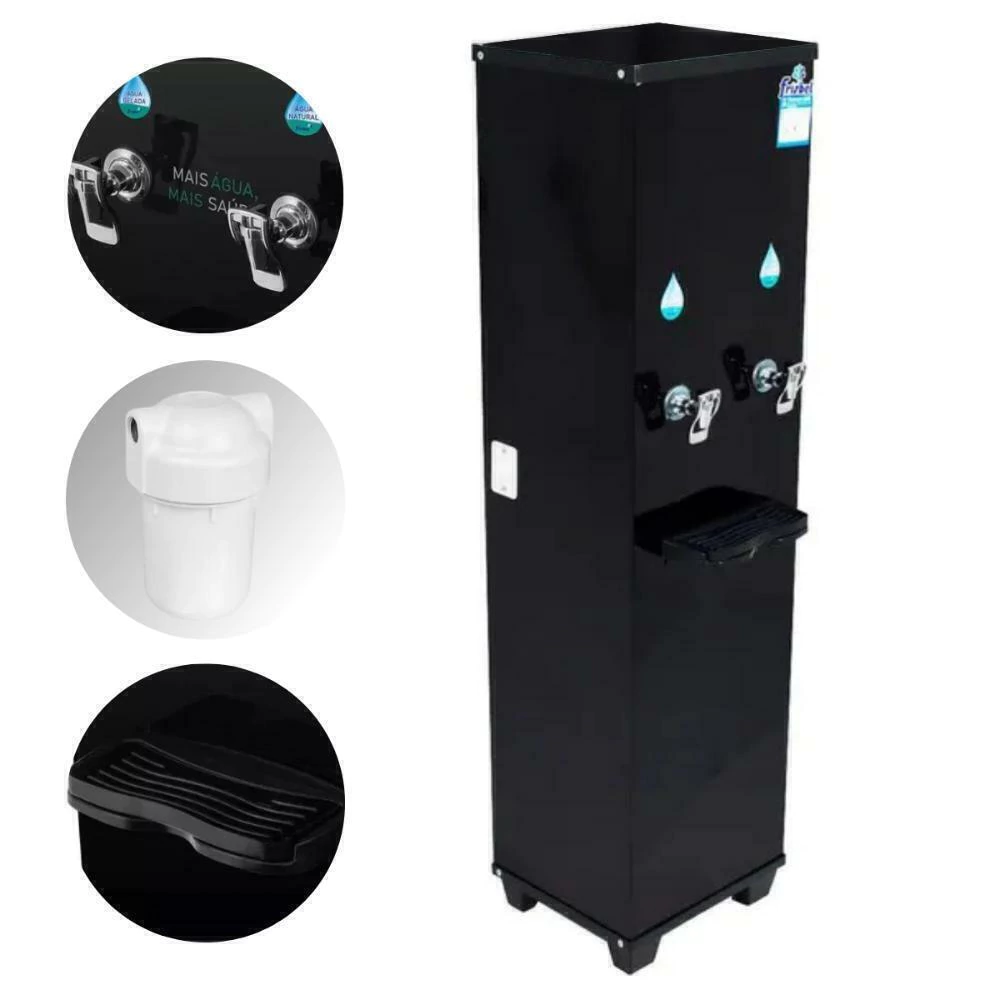 Bebedouro Industrial Office Black Coluna 25 Litros 1 Torneira Gelada 1 Torneira Natural - Frisbel