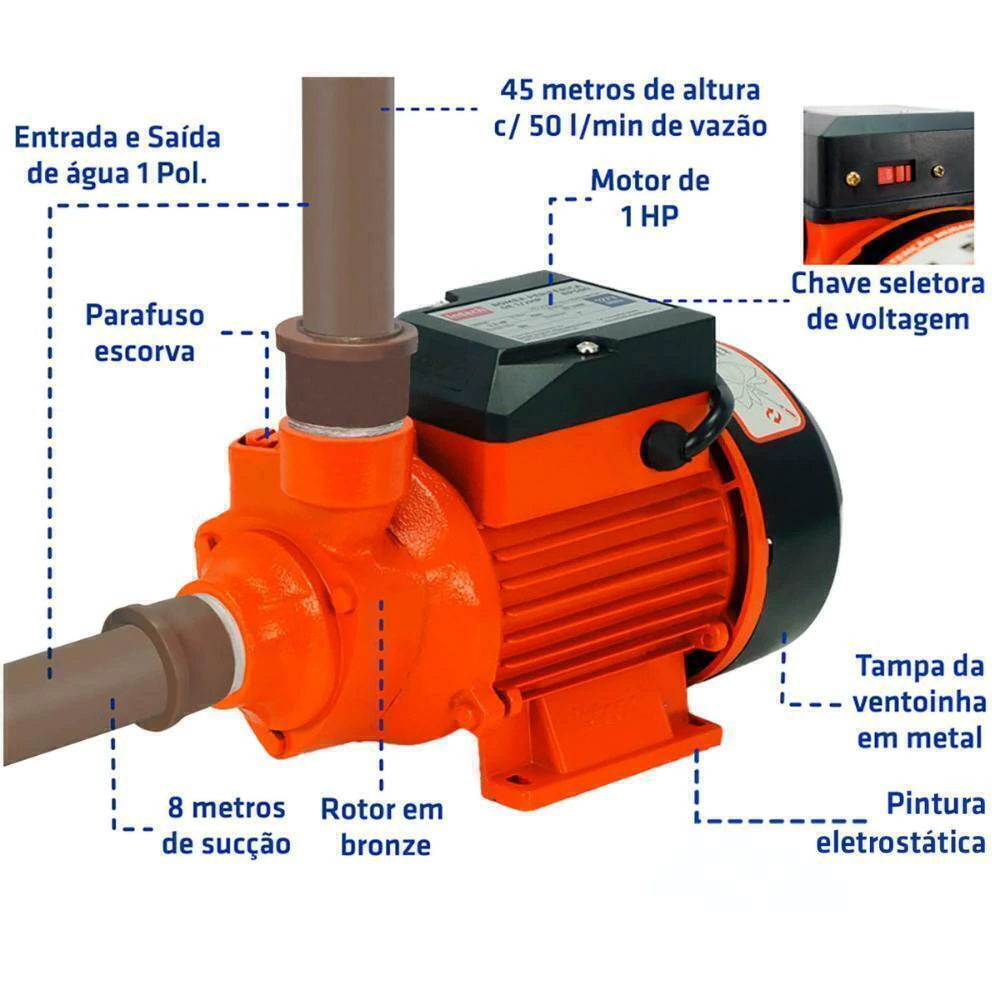 Como toda bomba periférica, a BP1000 é mais indicada quando há a necessidade de bombear a água a uma altura maior.