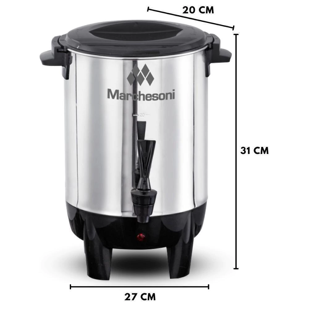 As exclusivas cafeteiras da Linha Automática Marchesoni são práticas e eficientes. São perfeitas para preparar o café e mantê-lo aquecido na temperatura ideal para o consumo. Fabricadas em aço inoxidável, possuem termostato automático e torneira para autosserviço.