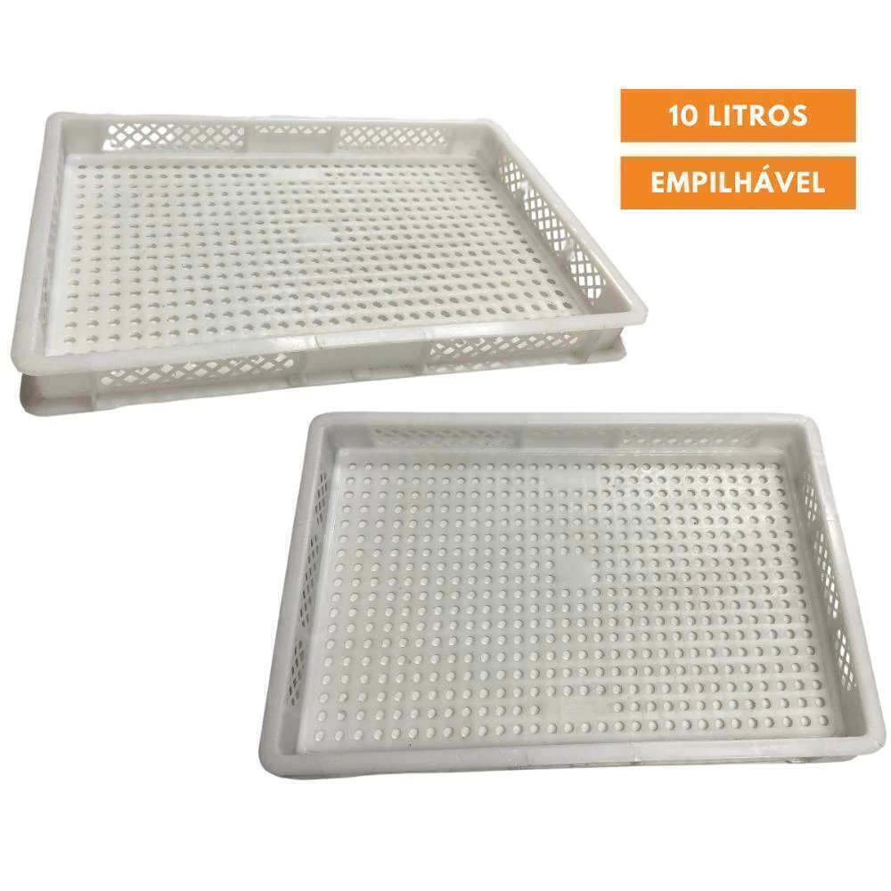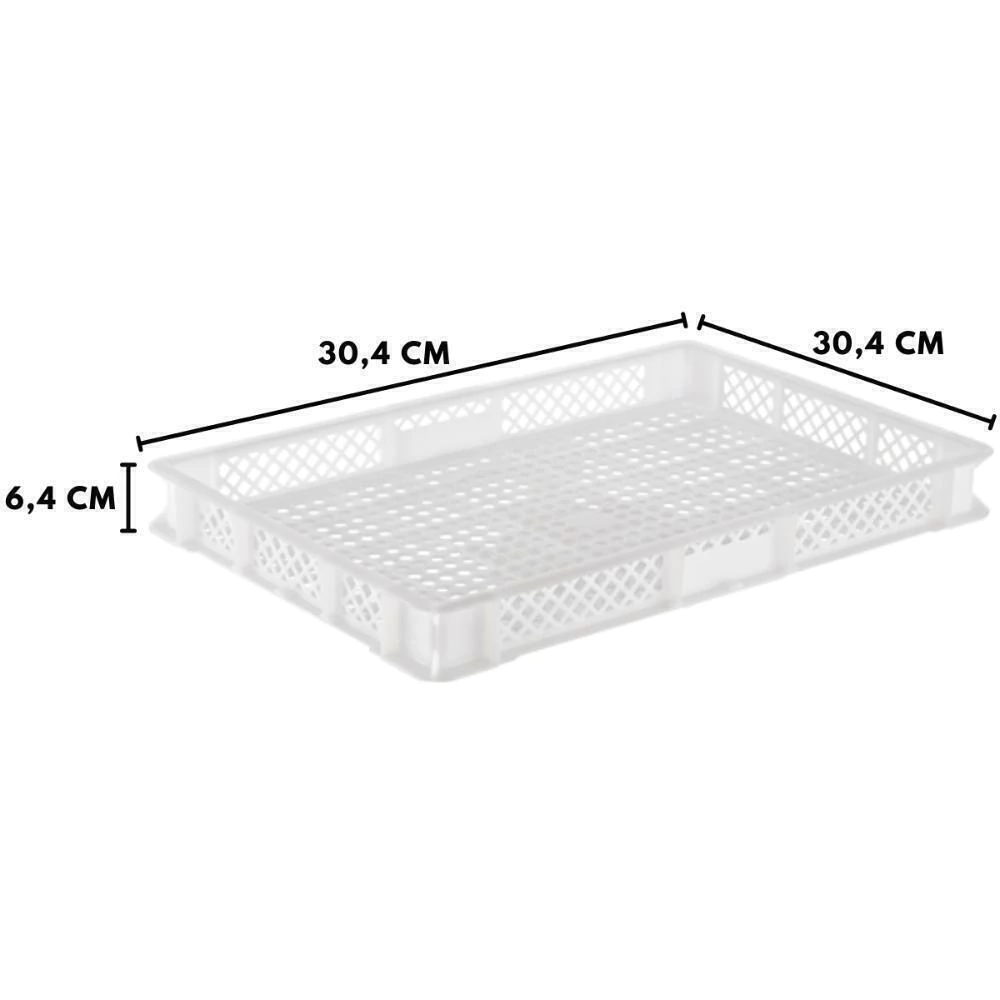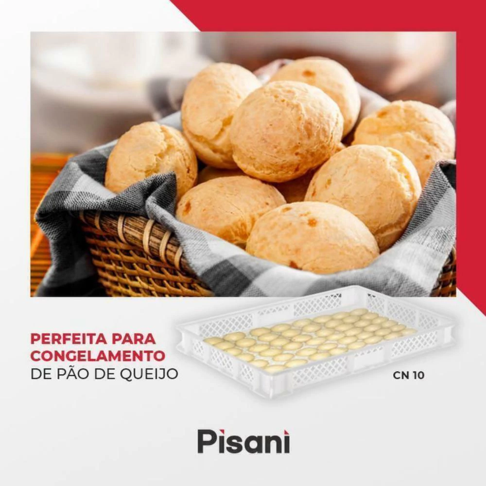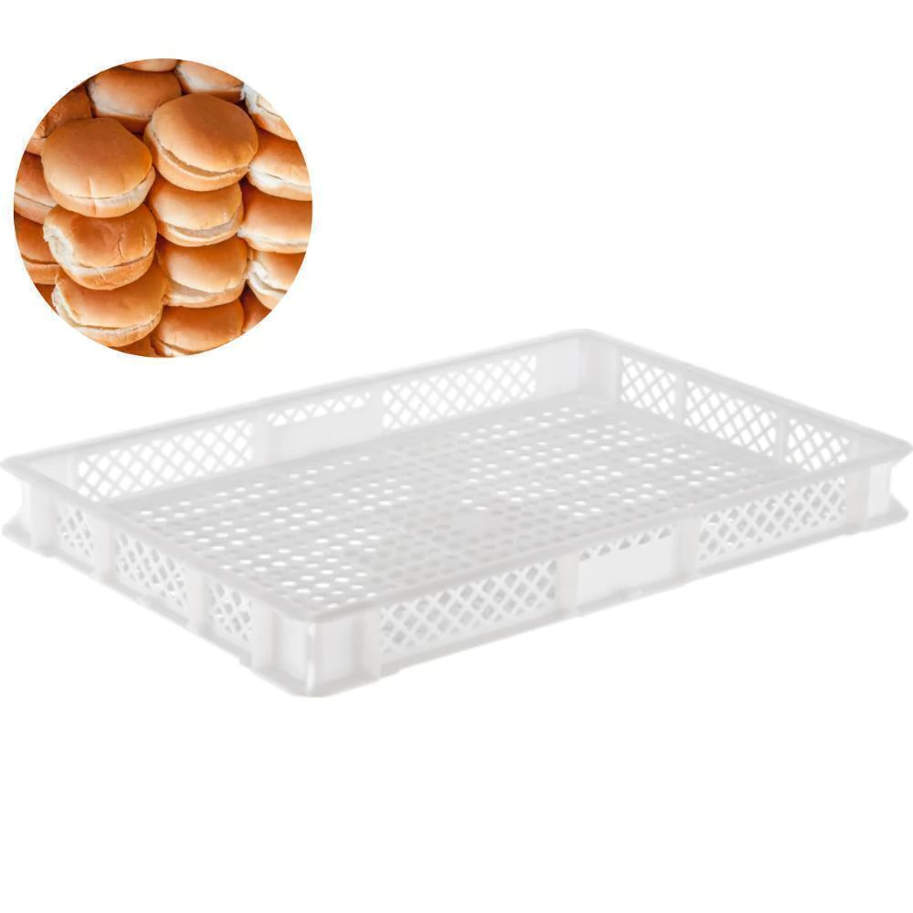 Caixa plástica vazada 10 L para uso geral, especialmente frigorificação e congelamento de pães quando fornecidos na versão aberta. A caixa é vazada nas laterais e no fundo, o que possibilita melhor circulação do ar frio dentro das câmaras e facilita a frigorificação.