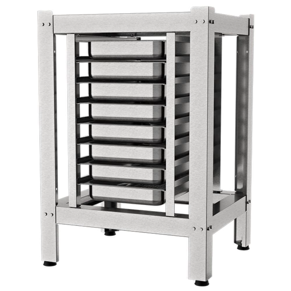O cavalete Wictory oferece robustez e funcionalidade, otimizando o espaço na cozinha profissional. Sua estrutura em aço inox AISI 430 garante durabilidade e facilidade na limpeza.
