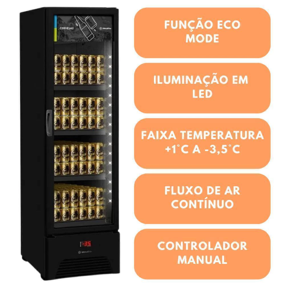 Trabalha com fluxo de ar contínuo para resfriamento rápido e uniforme de garrafas e latas. Seu controlador eletrônico atua para rápida recuperação de temperatura, mesmo após seguidas aberturas de porta, preservando a temperatura ideal de sua cerveja e o baixo consumo de energia!