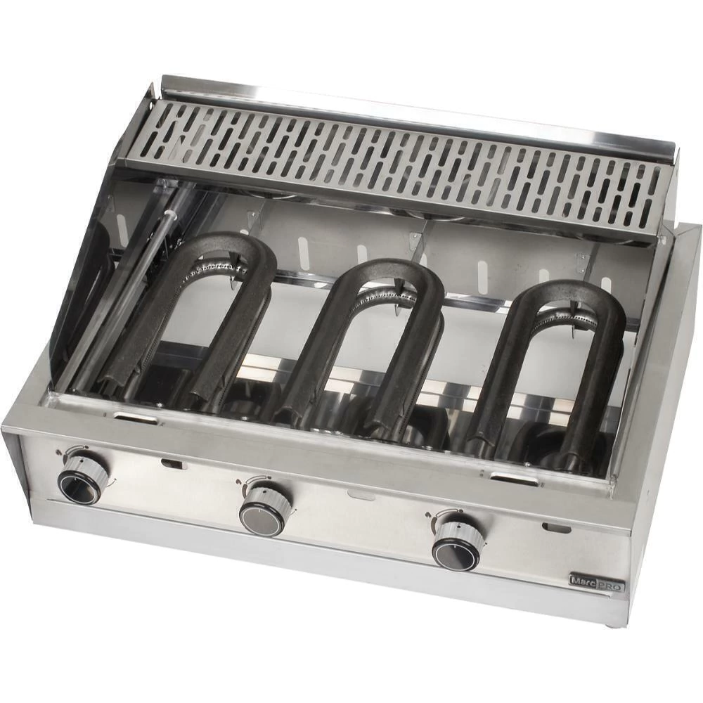 - 3 queimadores de alta potência em aço inox com dupla furação