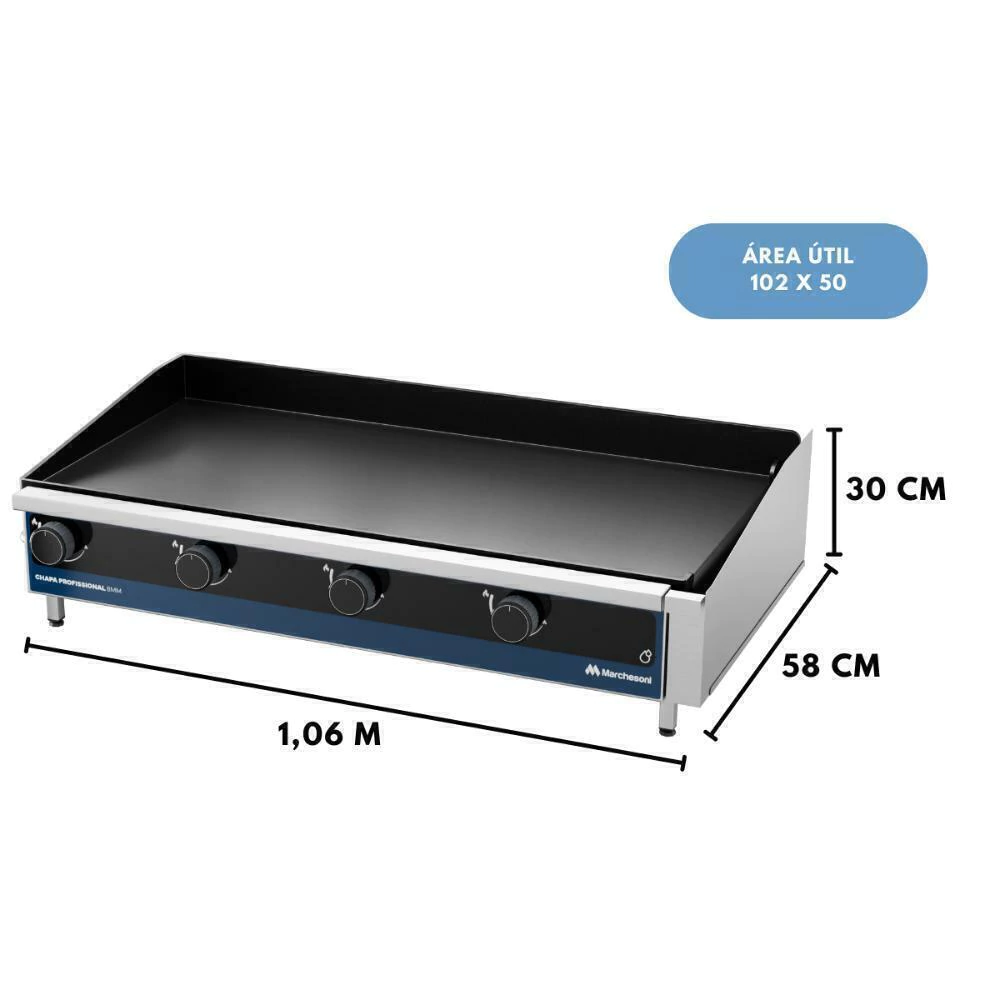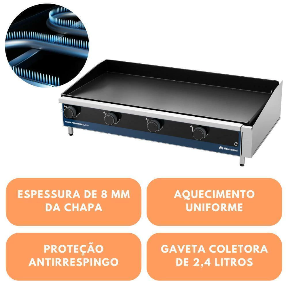 Chapa Profissional Para Lanches 4 Queimadores 8mm Marchesoni