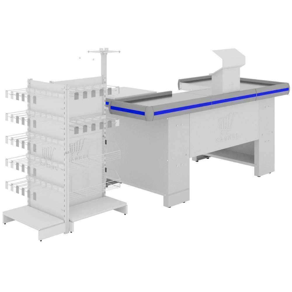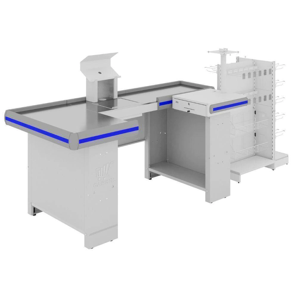 1 Checkout Em "U" Bilateral de 1,50m Amapá branco com perfil azul