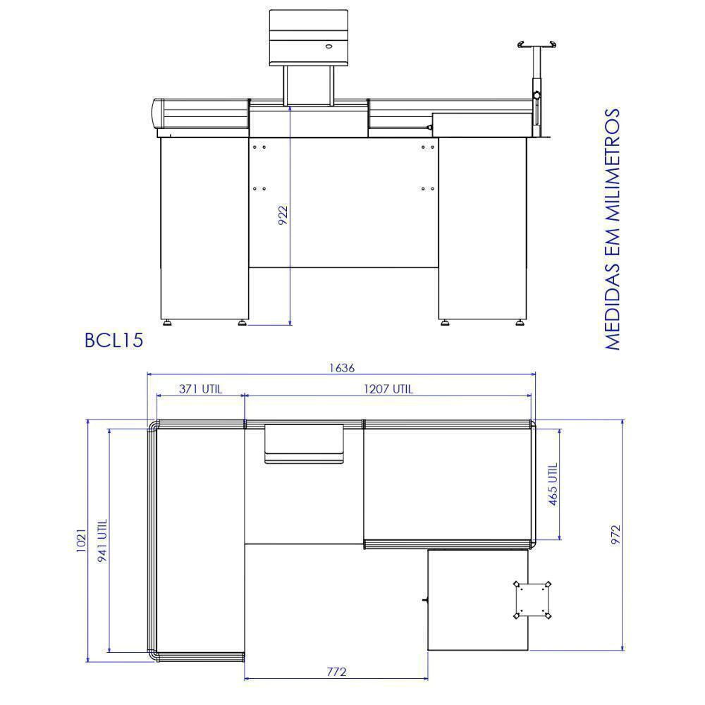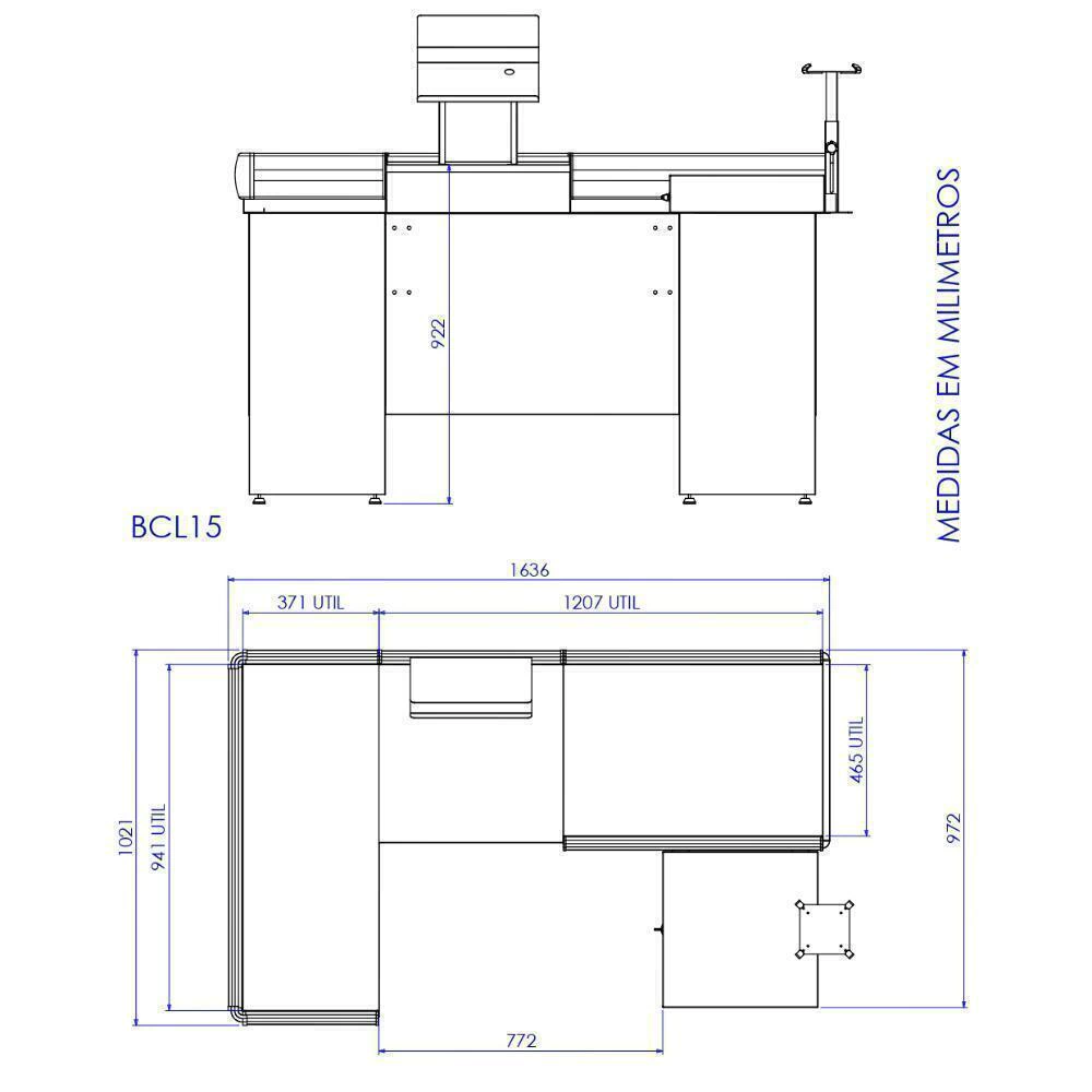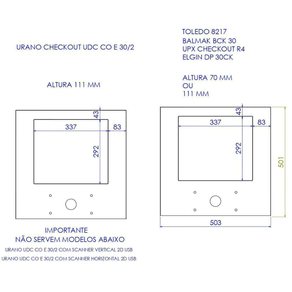 Sua montagem bilateral possibilita uma melhor comodidade para o seu negócio, podendo dispor o equipamento para ambos os lados. Possui recorte para balança Toledo 8217 ou URANO CHECKOUT UDC CO E 30/2