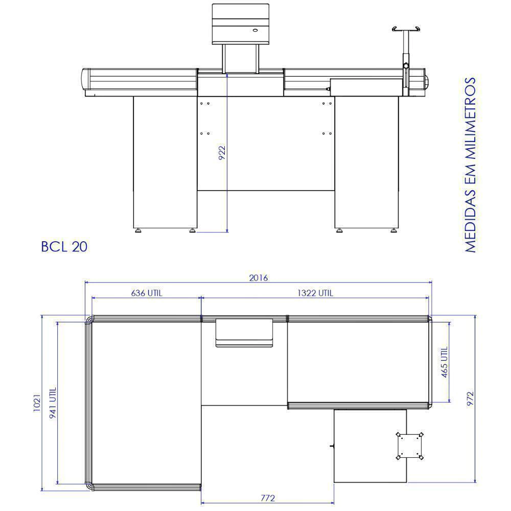 Sua montagem bilateral possibilita uma melhor comodidade para o seu negócio, podendo dispor o equipamento para ambos os lados. Possui recorte para balança Toledo 8217 ou URANO CHECKOUT UDC CO E 30/2