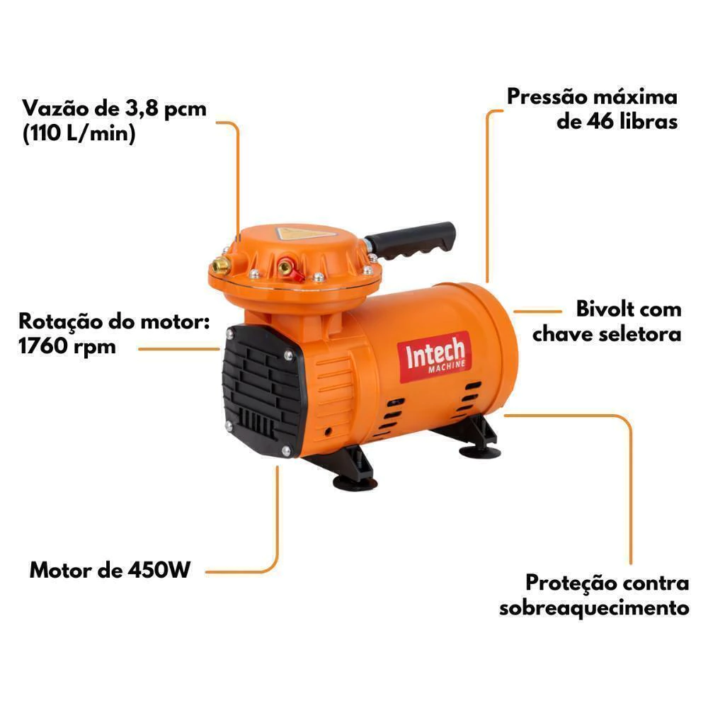 O Compressor de ar direto Windjet da Intech Machine é um produto multiuso, é ideal para pintura de paredes, portas, grades, painéis e peças de artesanato, limpeza de teclados, objetos e equipamentos, inflagem de pneus, piscinas, bolas e balões de aniversário, pulverização de produtos de limpeza, higiene e líquidos de proteção.