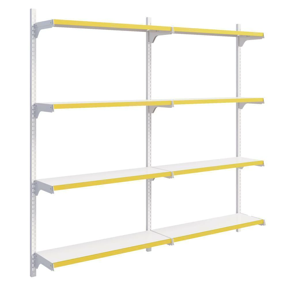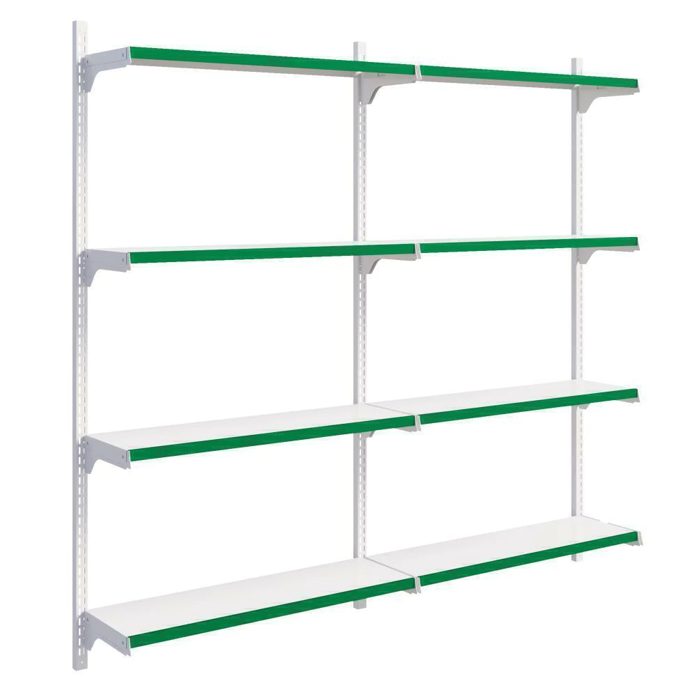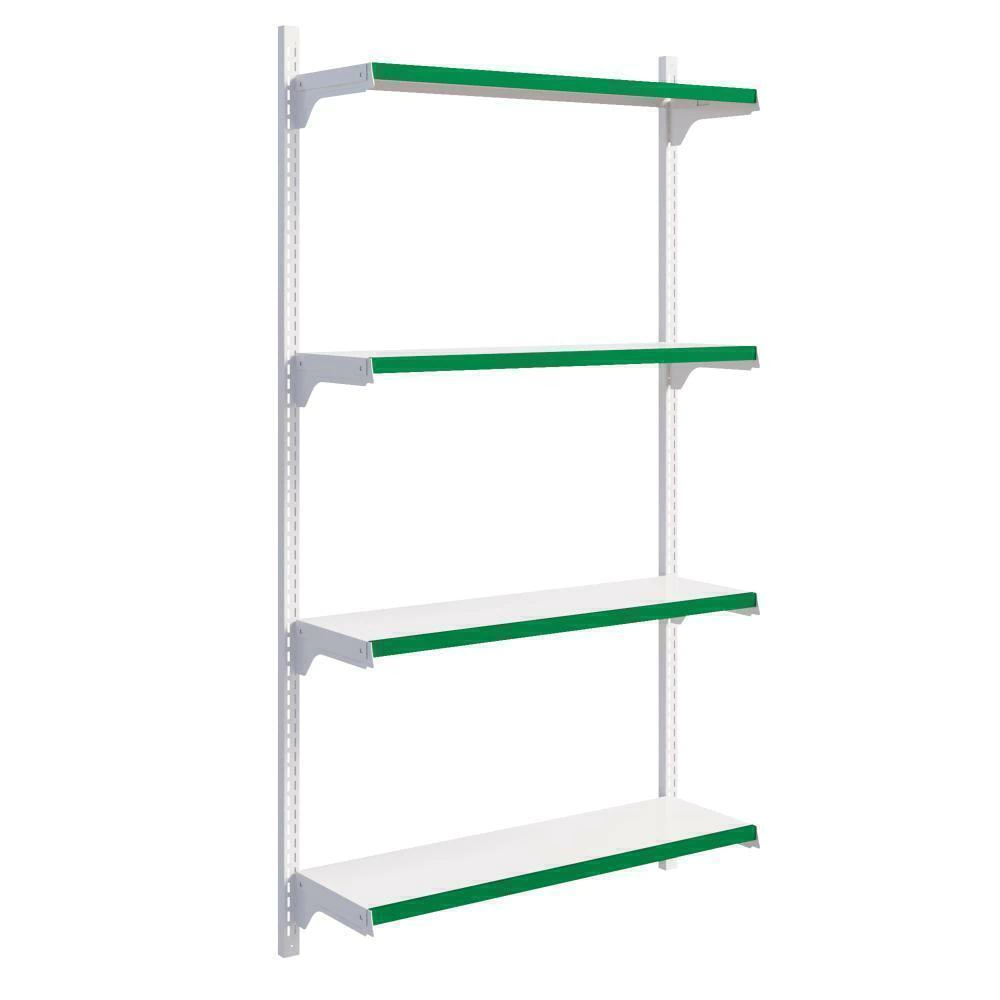Cremalheira em aço para melhor custo benefício, acompanha bandejas com regulagem para melhor exposição dos produtos e porta etiquetas.