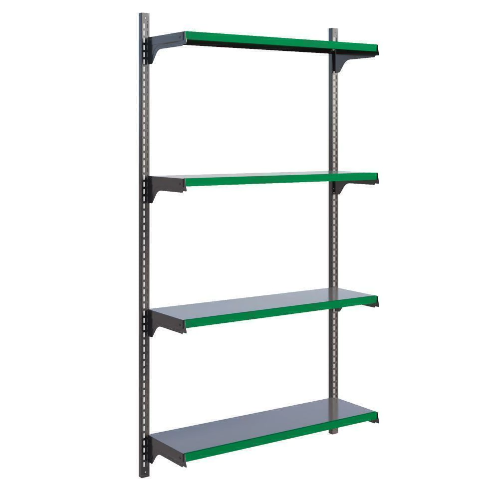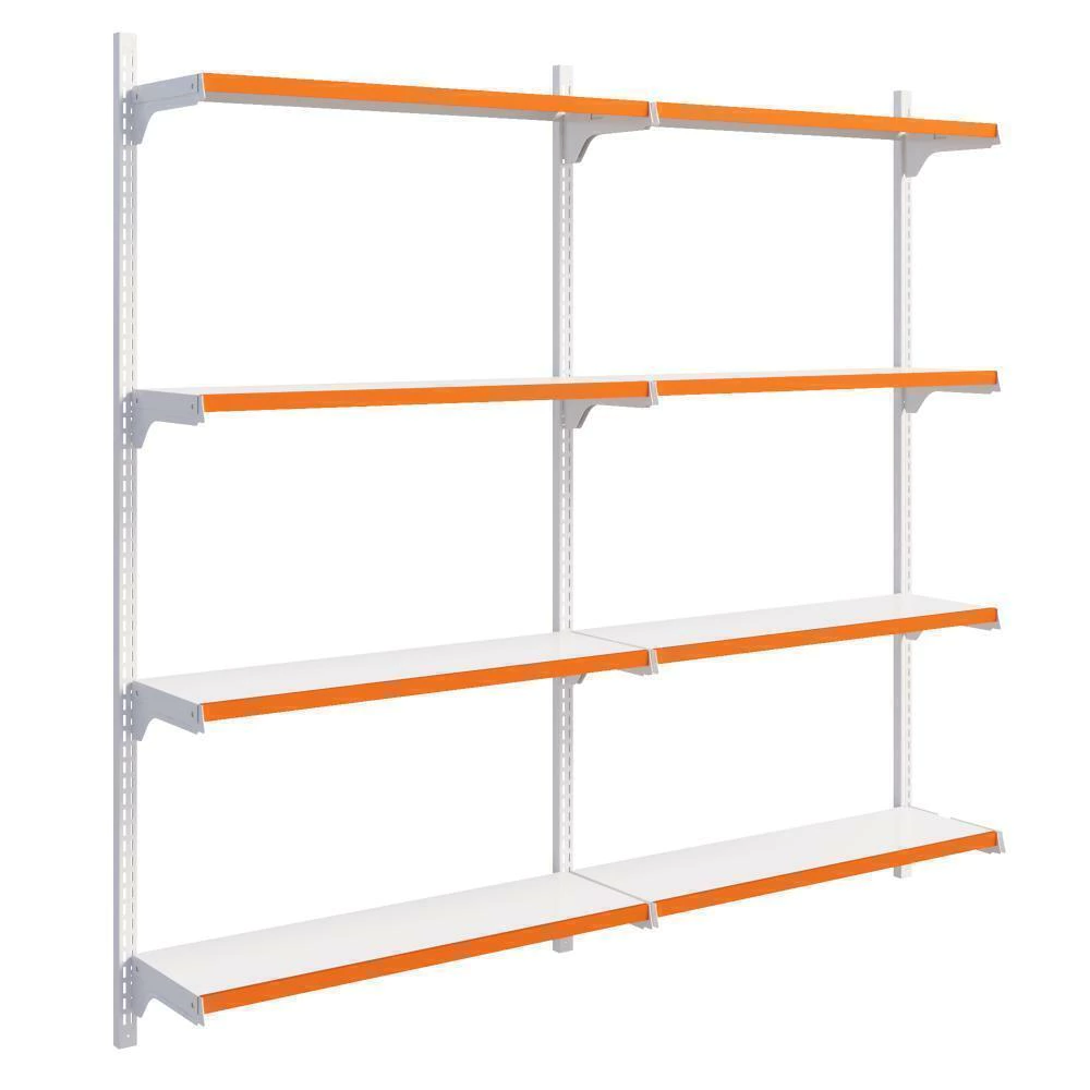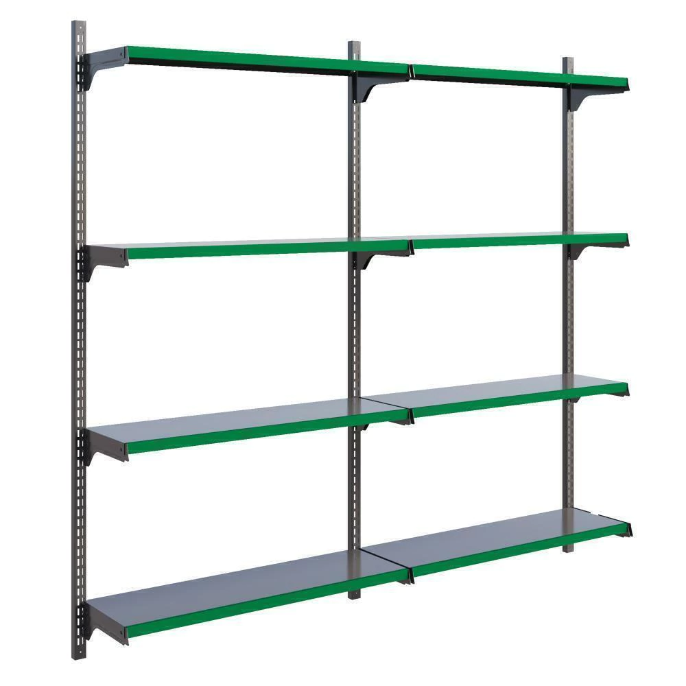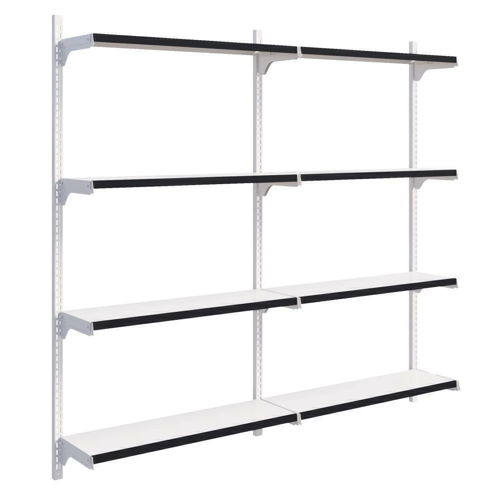 Cremalheira em aço para melhor custo benefício, acompanha bandejas com regulagem para melhor exposição dos produtos e porta etiquetas.