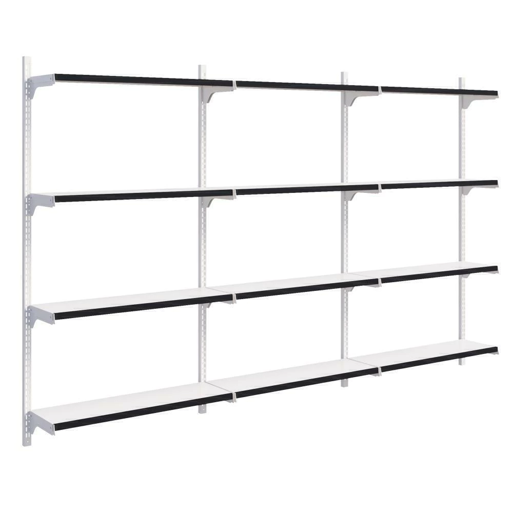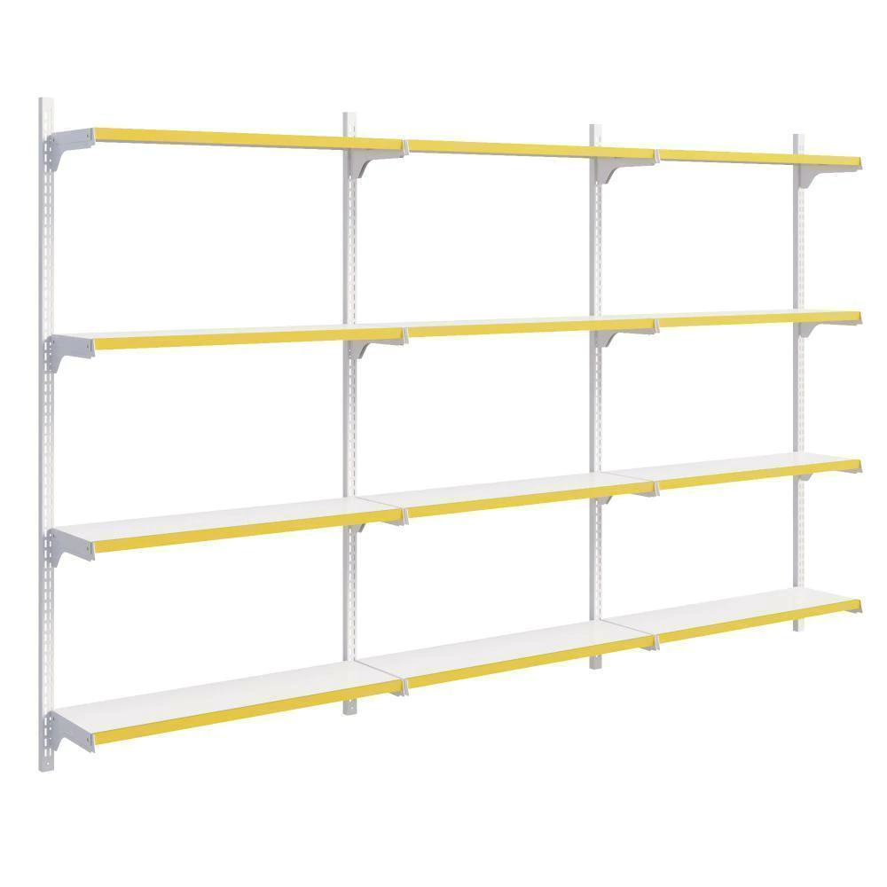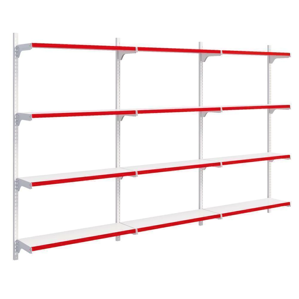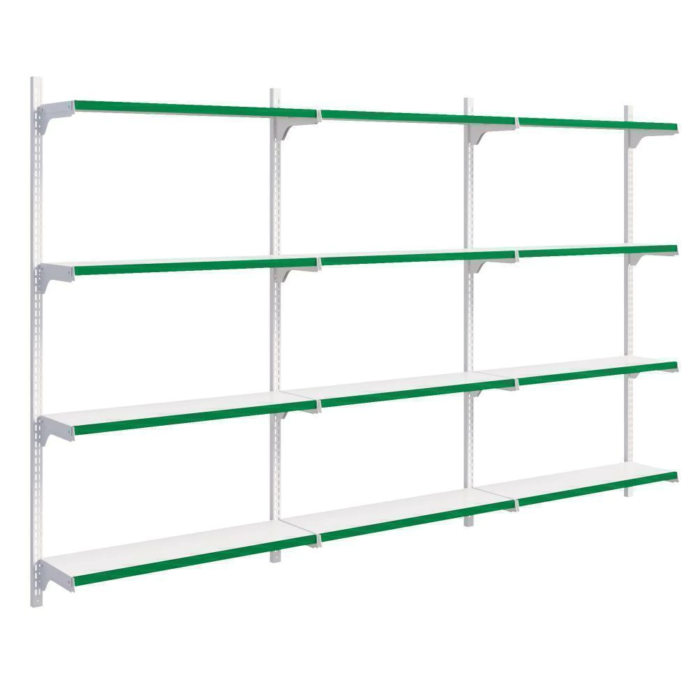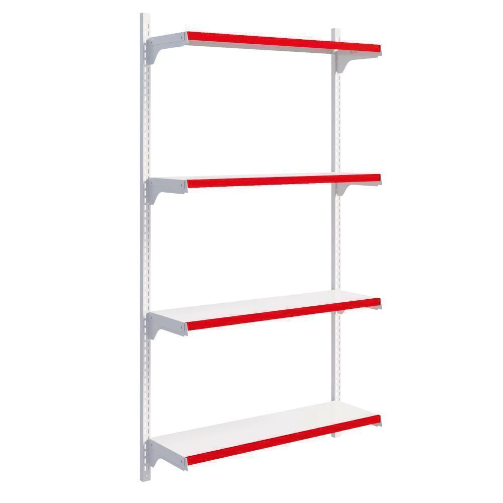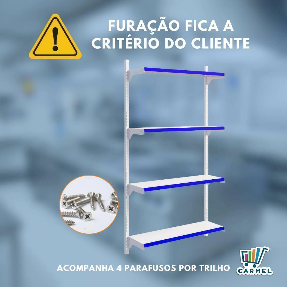 Cremalheira em aço para melhor custo benefício, acompanha bandejas com regulagem para melhor exposição dos produtos e porta etiquetas.
