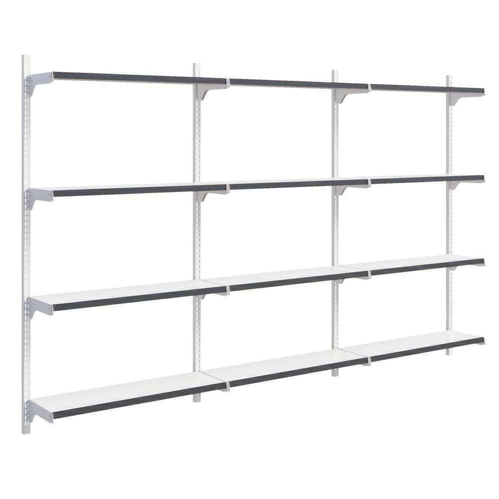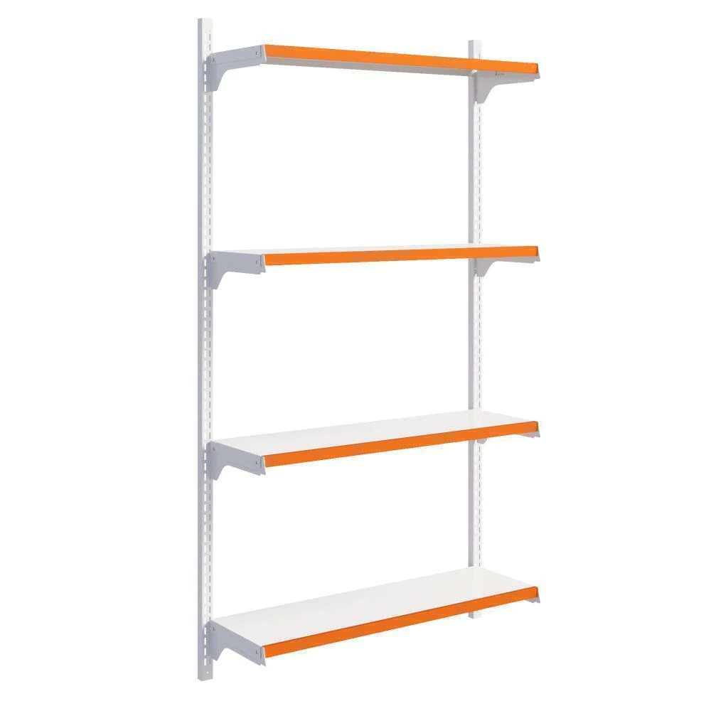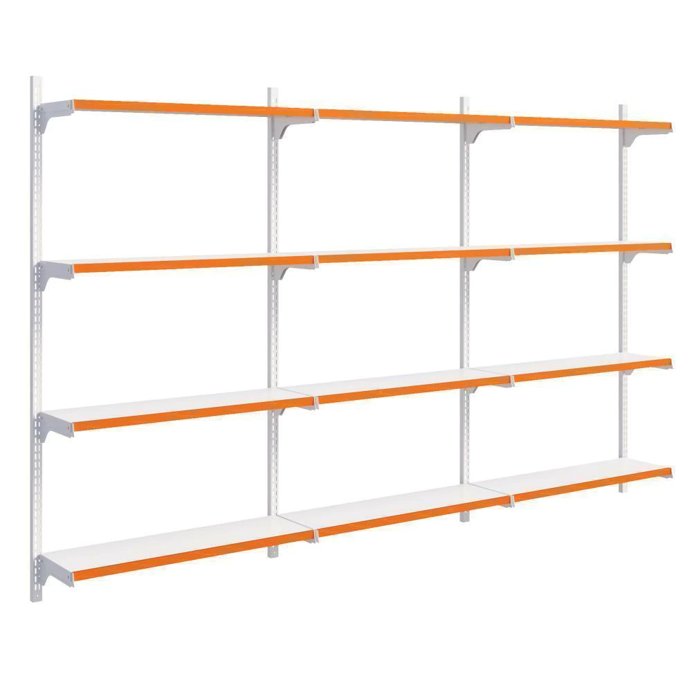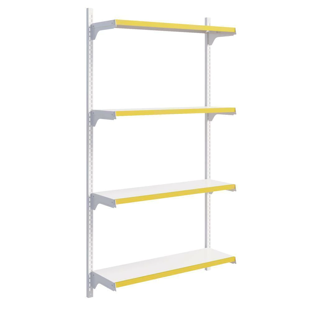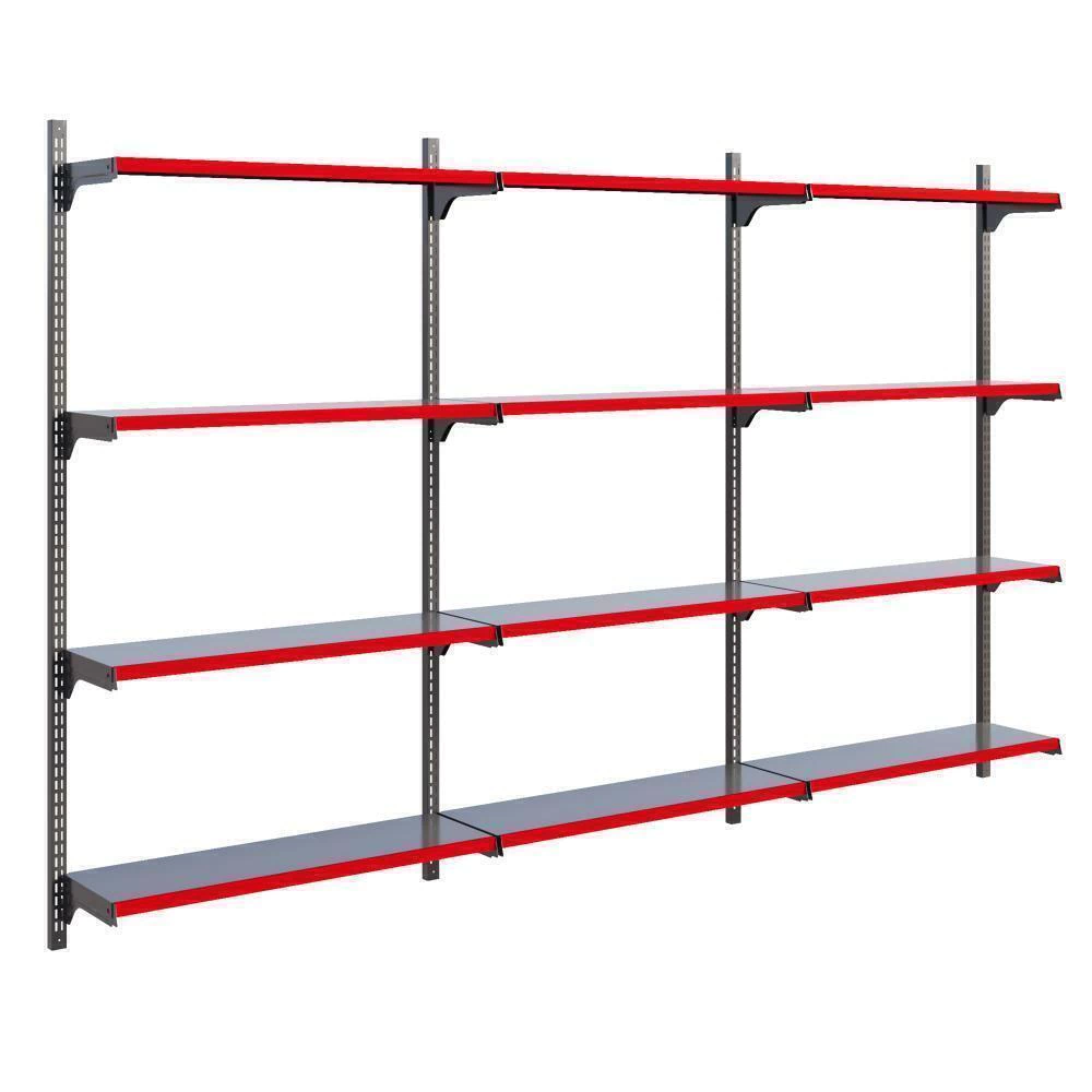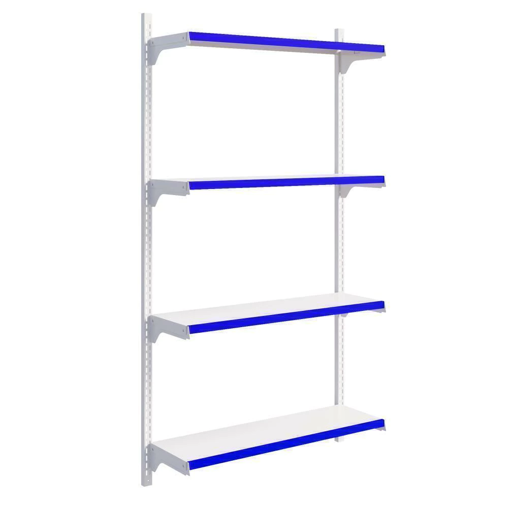 Cremalheira em aço para melhor custo benefício, acompanha bandejas com regulagem para melhor exposição dos produtos e porta etiquetas.