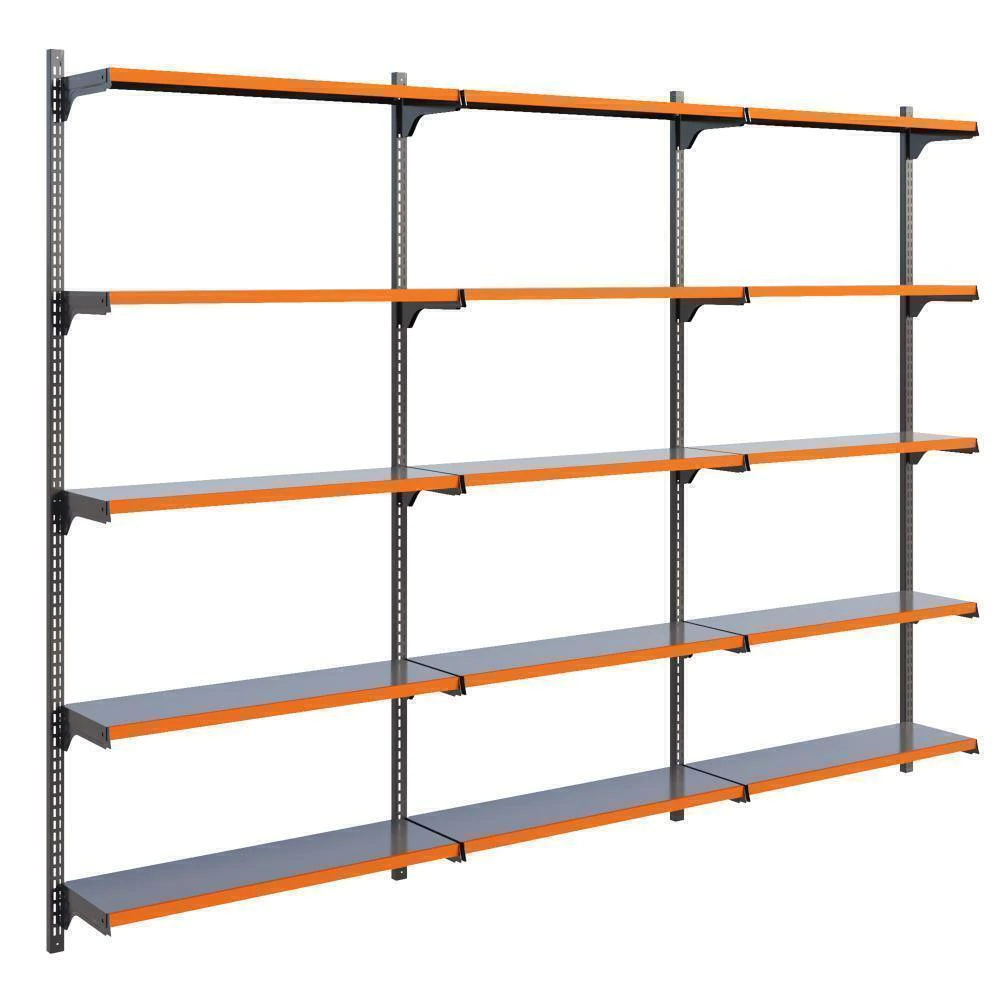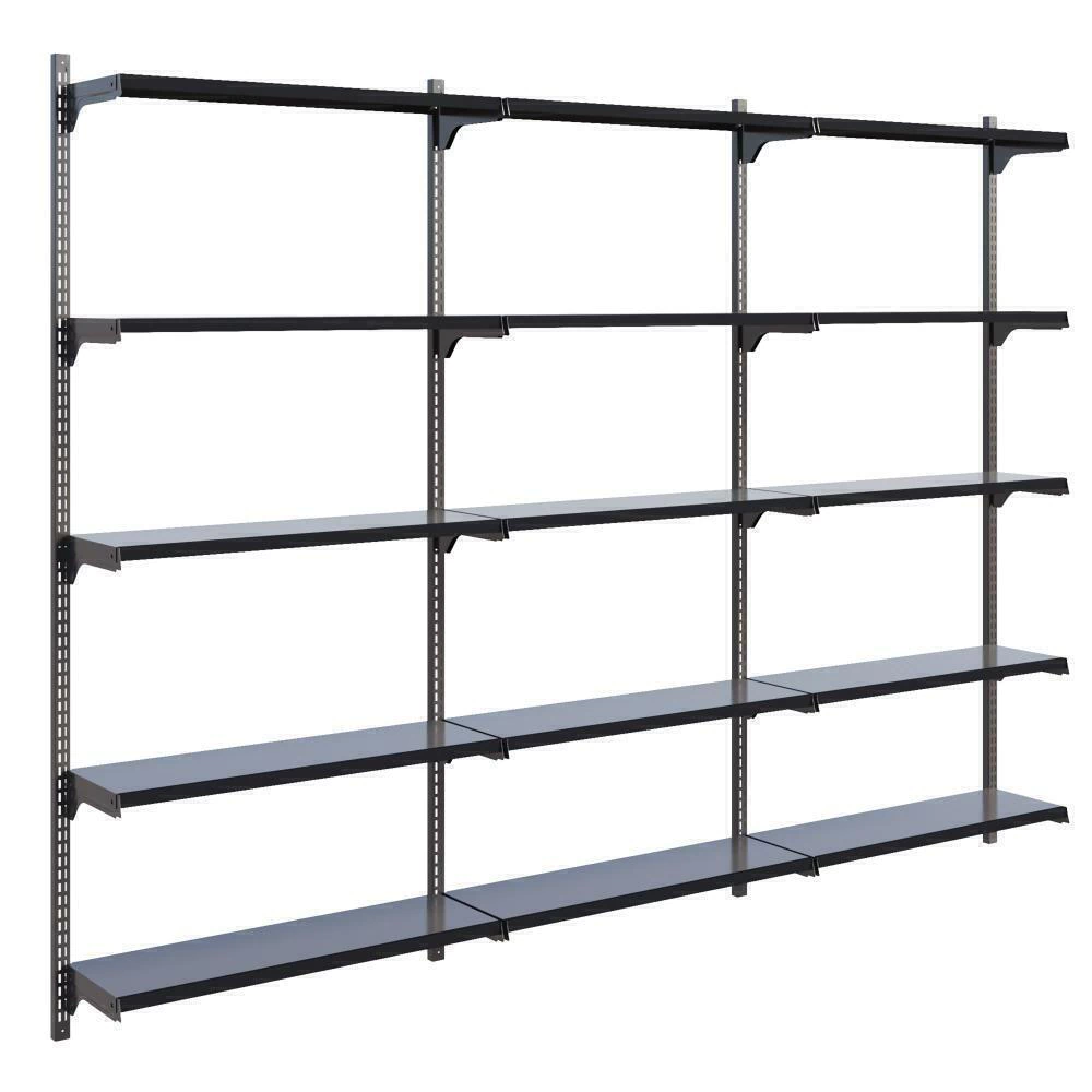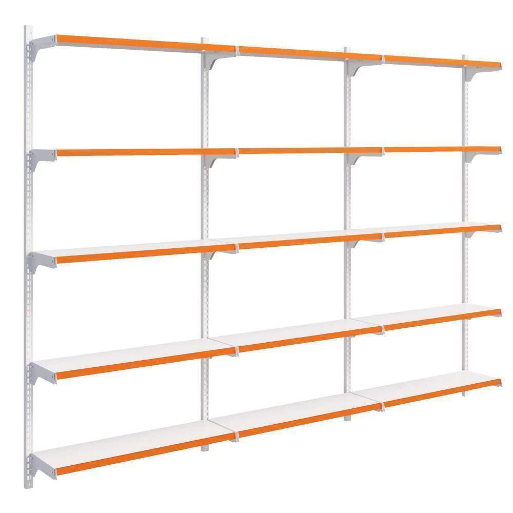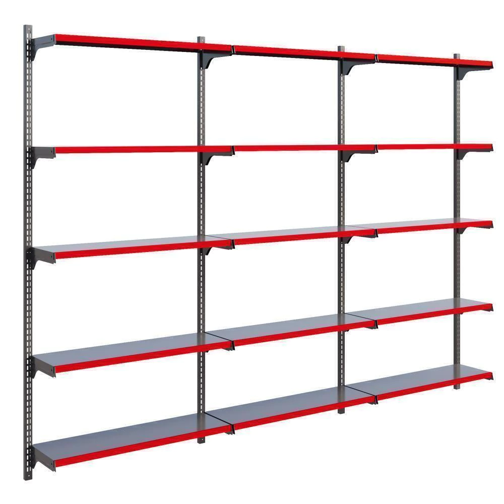 Cremalheira em aço para melhor custo benefício, acompanha bandejas com regulagem para melhor exposição dos produtos e porta etiquetas.