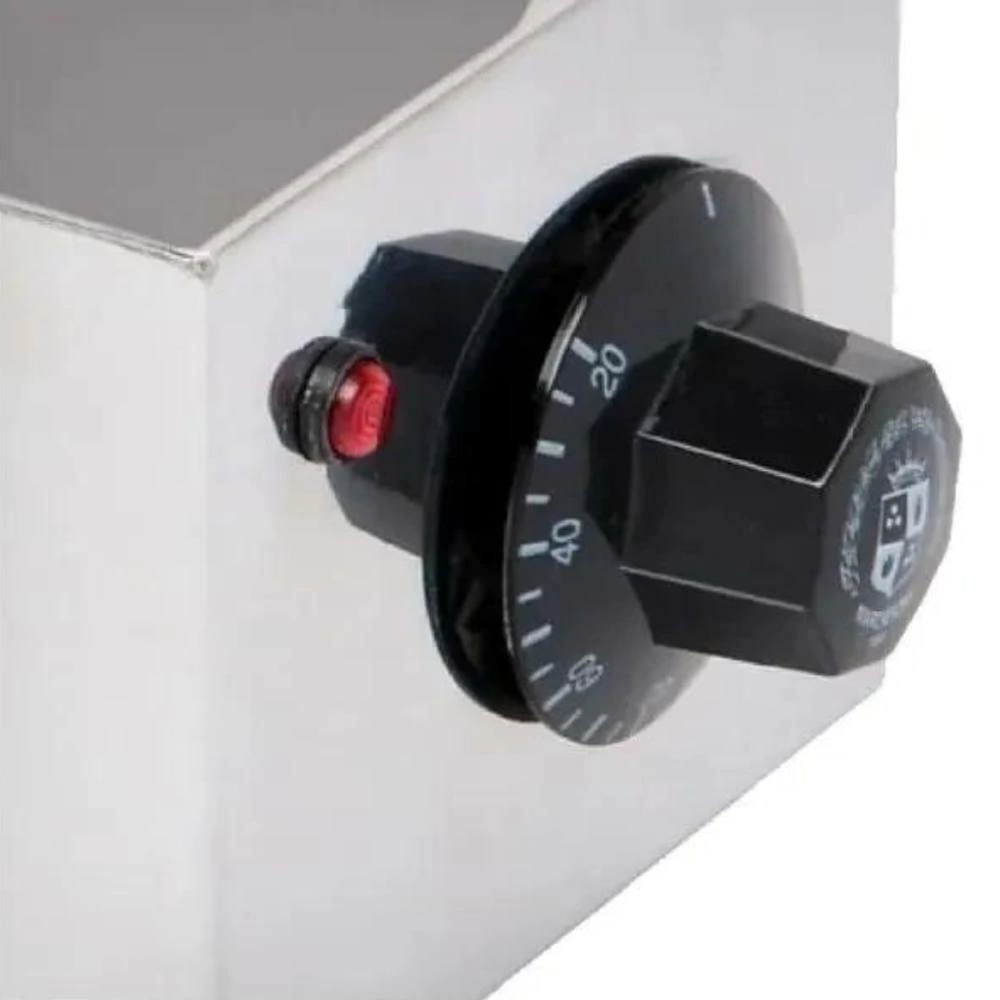- Com termostato regulável, o que permite que você defina a temperatura ideal para derreter ou manter o chocolate aquecido