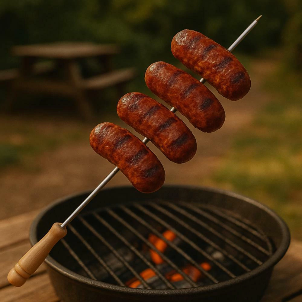 - Formato simples: Impede que as carnes girem, garantindo cozimento por igual