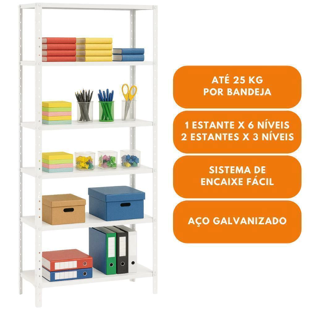 Produto de fácil montagem, com a simples colocação de porcas e parafusos unindo as bandejas às colunas. Perfeita para escritórios, papelarias, escolas, estoques de loja ou até mesmo ambientes residências.