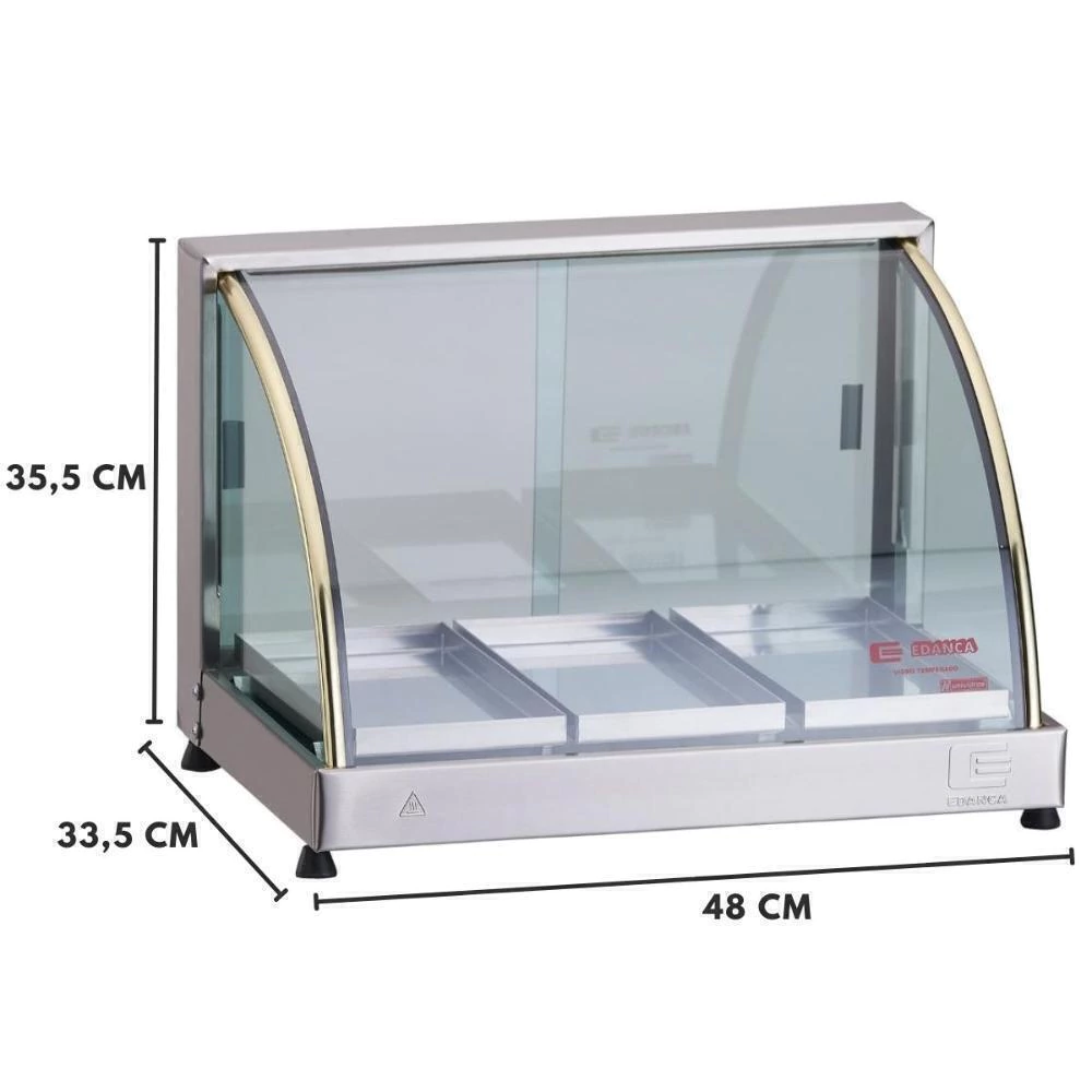 Estufa linha ouro Edanca a única com maior área útil do mercado. Possui umidificador, evitando alimentos ressecados. Produto de fácil montagem.
