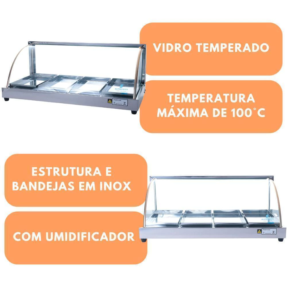 Uma maneira prática e eficaz de preservar seus salgados, além de mantê-los mais quentes durante um maior período de tempo. O umidificador, ajuda a evitar que os alimentos sejam desidratados e ressecados, preservando sua textura e sabor.