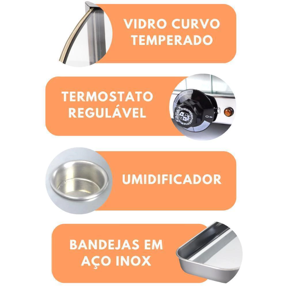 Uma maneira prática e eficaz de preservar seus salgados, além de mantê-los mais quentes durante um maior período de tempo. O umidificador, ajuda a evitar que os alimentos sejam desidratados e ressecados, preservando assim, sua textura e sabor.
