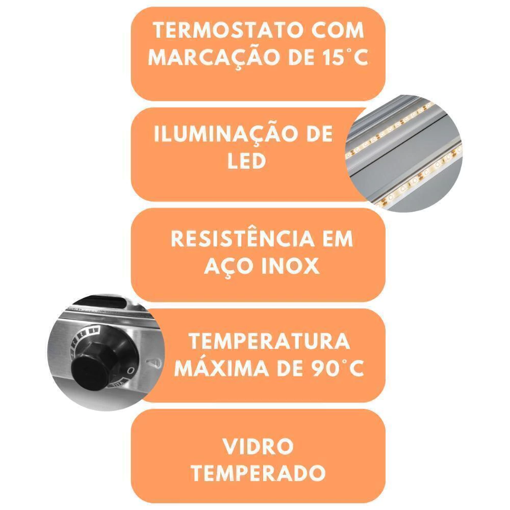 A linha EVR, traz a referências do estilo retrô para o seu negócio. Seu design clean e compacto confere melhor visualização dos produtos, além de preserva-los quentes e saborosos.