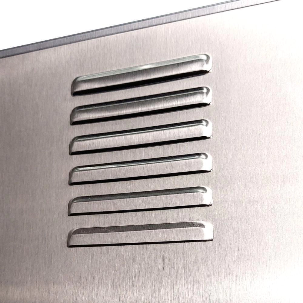- Estrutura fabricada em perfil de alumínio anodizado e aço inox