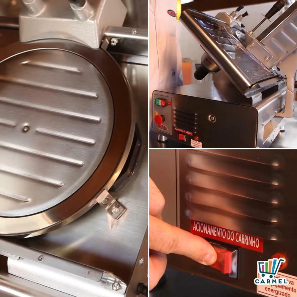 Sua lâmina é de 300 milímetros e seu motor de 1/2 HP tem capacidade de fatiar peças de até 16x19 centímetros sem ficar retalhos.