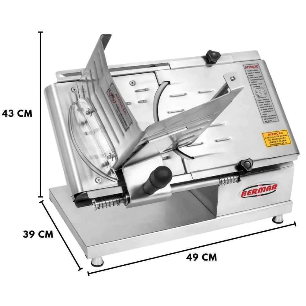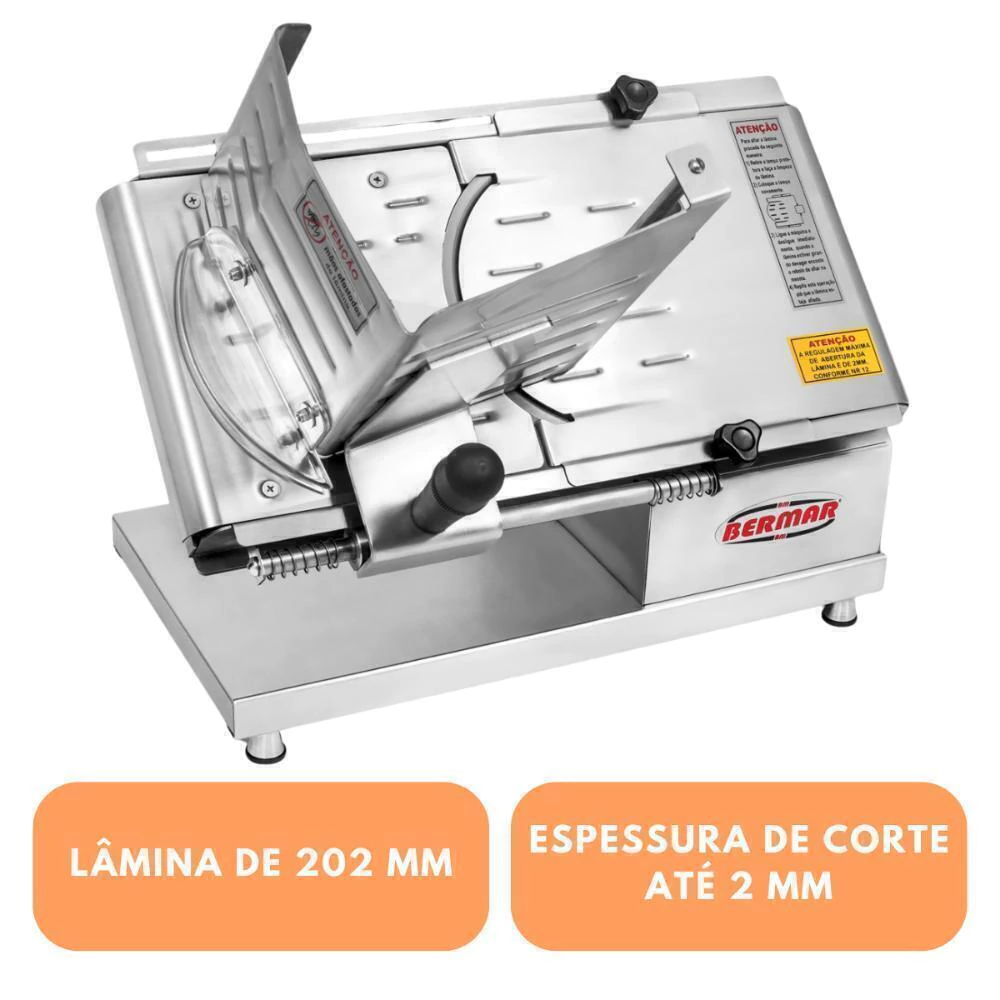 O Cortador e Fatiador de Frios Elétrico Bermar é fabricado em INOX e possui um corte seguro e preciso.