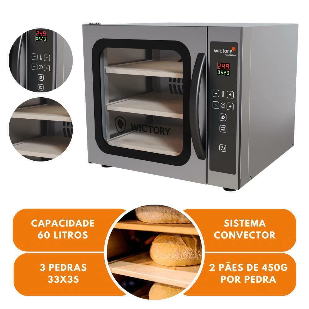 Forno Mini Convector Para Pães 60 L Inox Com 3 Pedras WCVP-335 Wictory