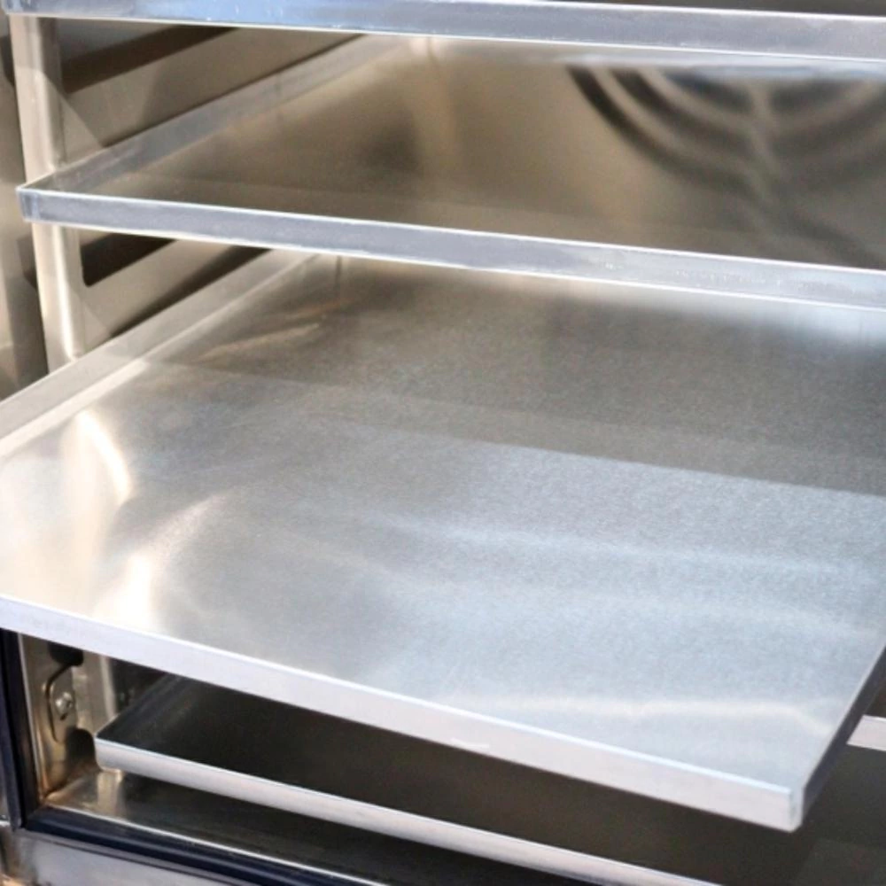 Este equipamento possui um recurso especial de programação de nível de umidade na câmara, que pode ser ajustado de forma automática. Isso significa que você pode escolher entre quatro intensidades diferentes de umidade, adaptando-se às necessidades específicas do seu processo de produção de pudins. Essa característica é especialmente benéfica para garantir a consistência ideal dos pudins, eliminando a necessidade de usar o método de banho-maria.