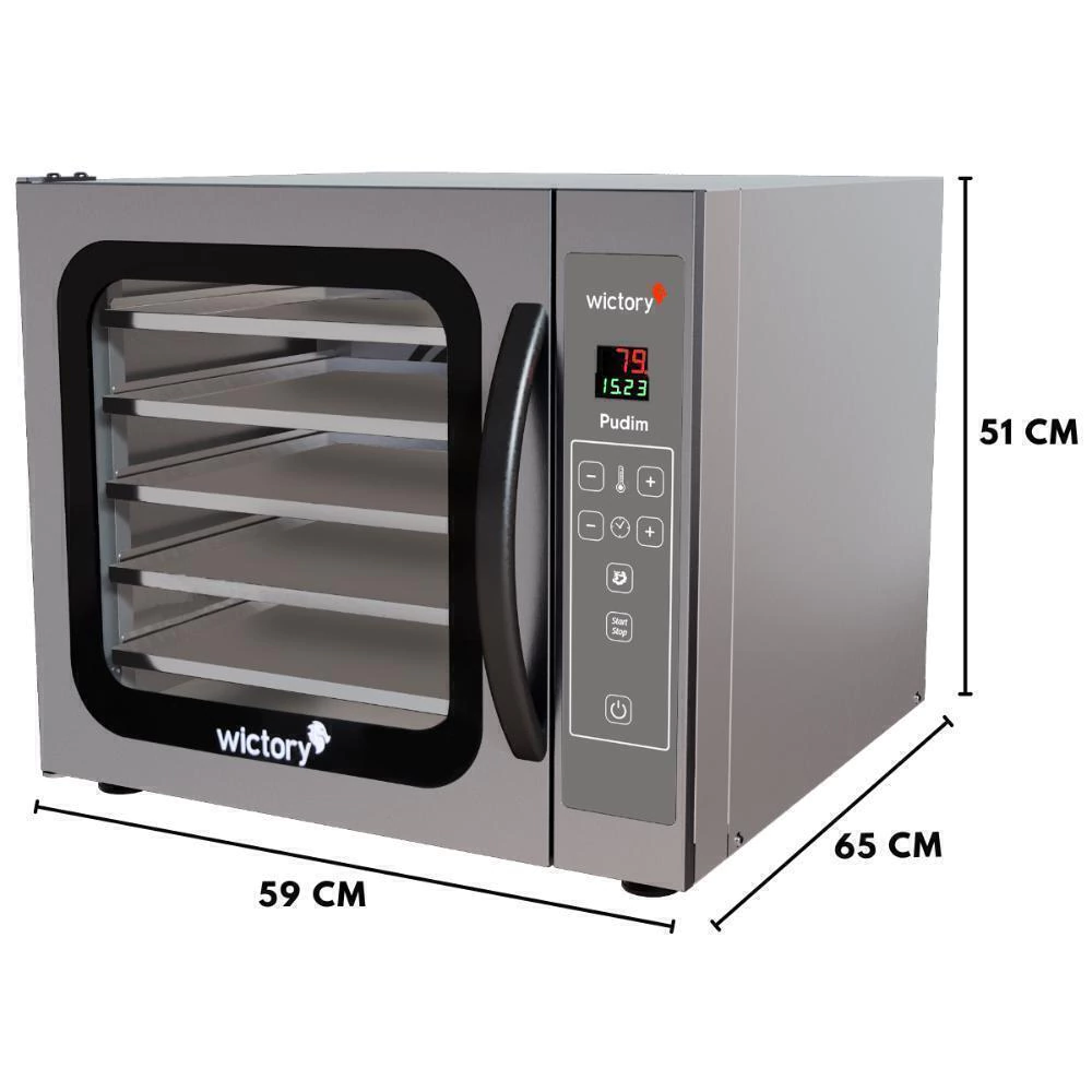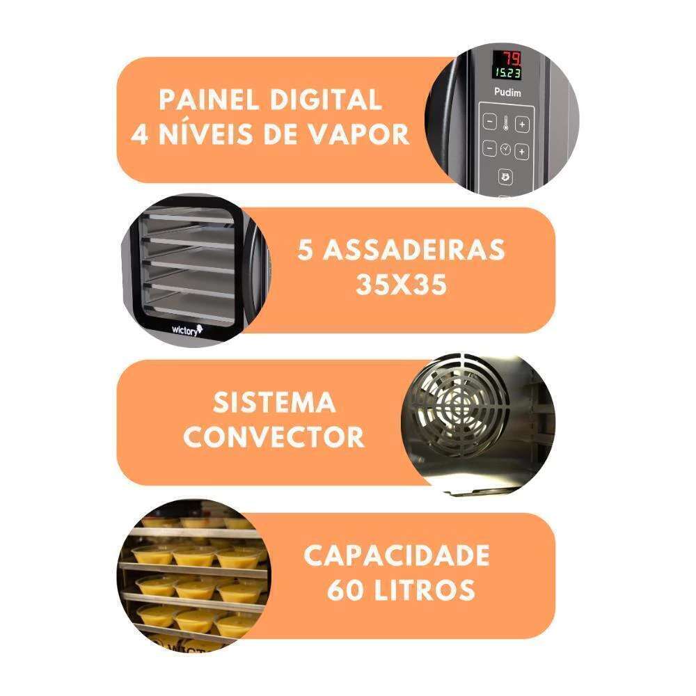 Forno Convector Pudim 60 Litros Inox Com 5 Assadeiras 35x35 Com Cavalete - Wictory
