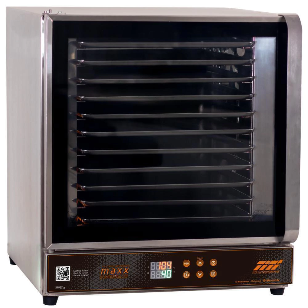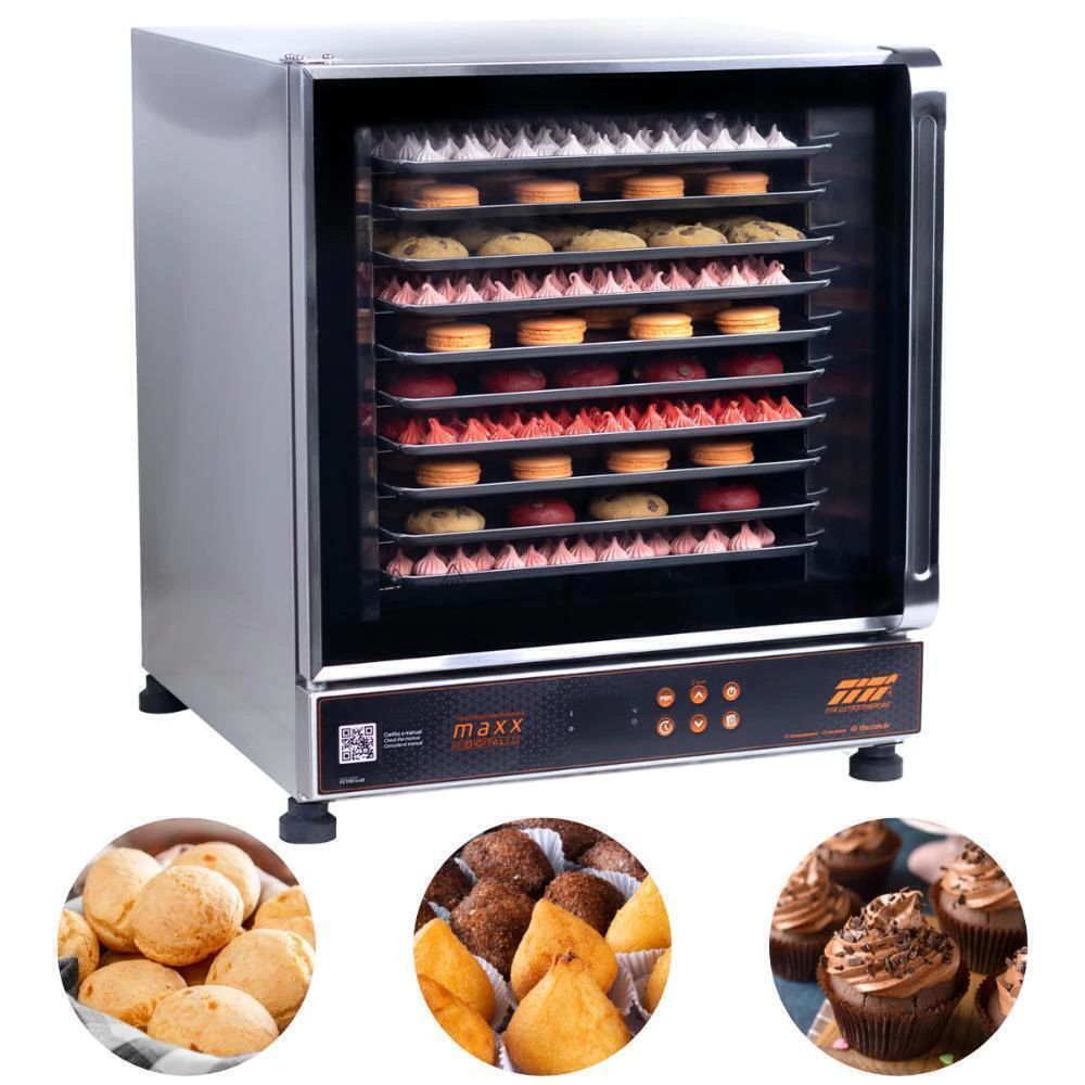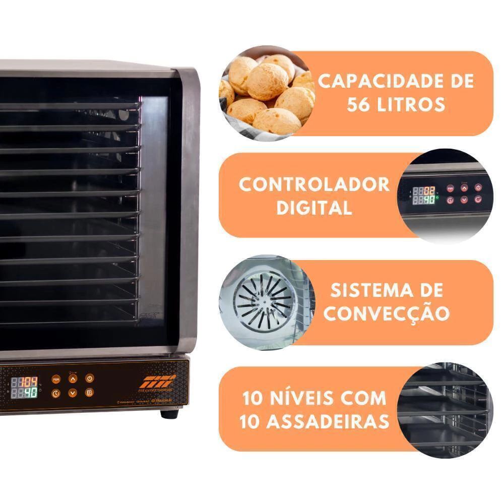 Seu alto desempenho através do sistema de convecção, funcionalidades simplificadas, como a regulagem de temperatura e timer, 3040W de potência e a possibilidade de utilizar até 10 assadeiras de 35x35cm ao mesmo tempo faz dele o complemento ideal para o seu negócio, resultando em praticadade e agilidade na sua produção.
