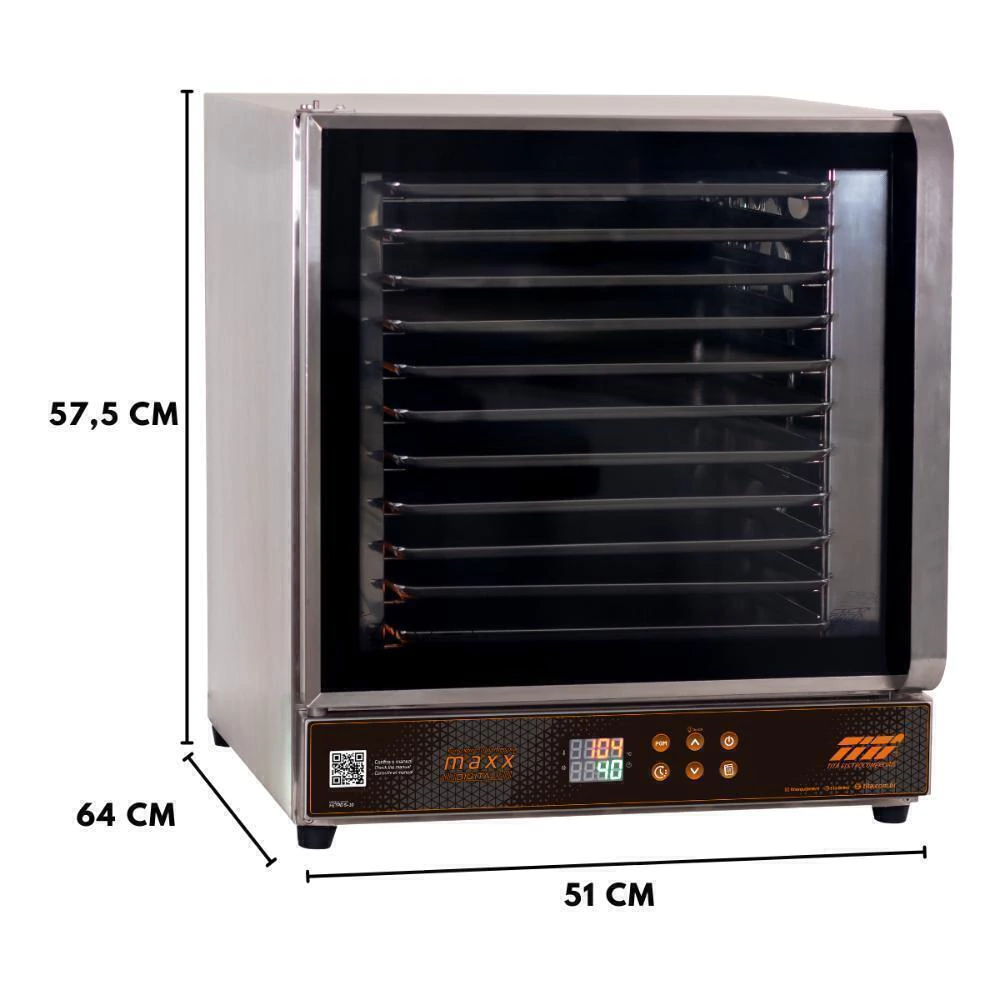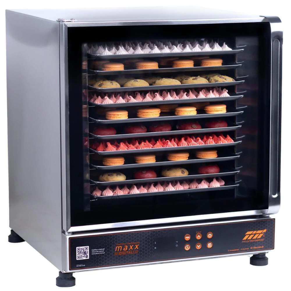 Com seu design robusto e amplo espaço interno, compacto e de fácil manuseio, o Forno Elétrico Turbo Professional Maxx pode ser utilizado em pequenos espaços e frentes de lojas promovendo maior destaque dos seus produtos.