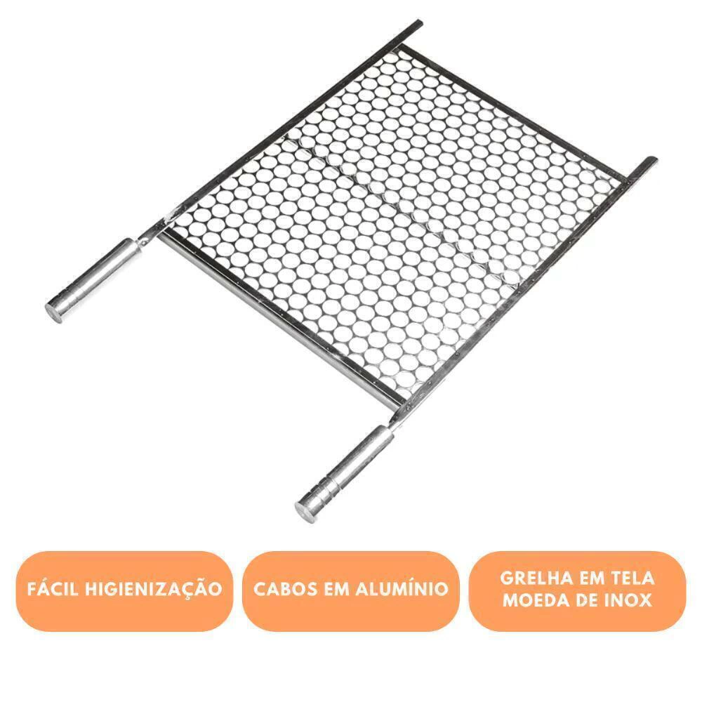 - Grelha plana em tela moeda (malha larga que facilita o calor e deixa marcas perfeitas)
