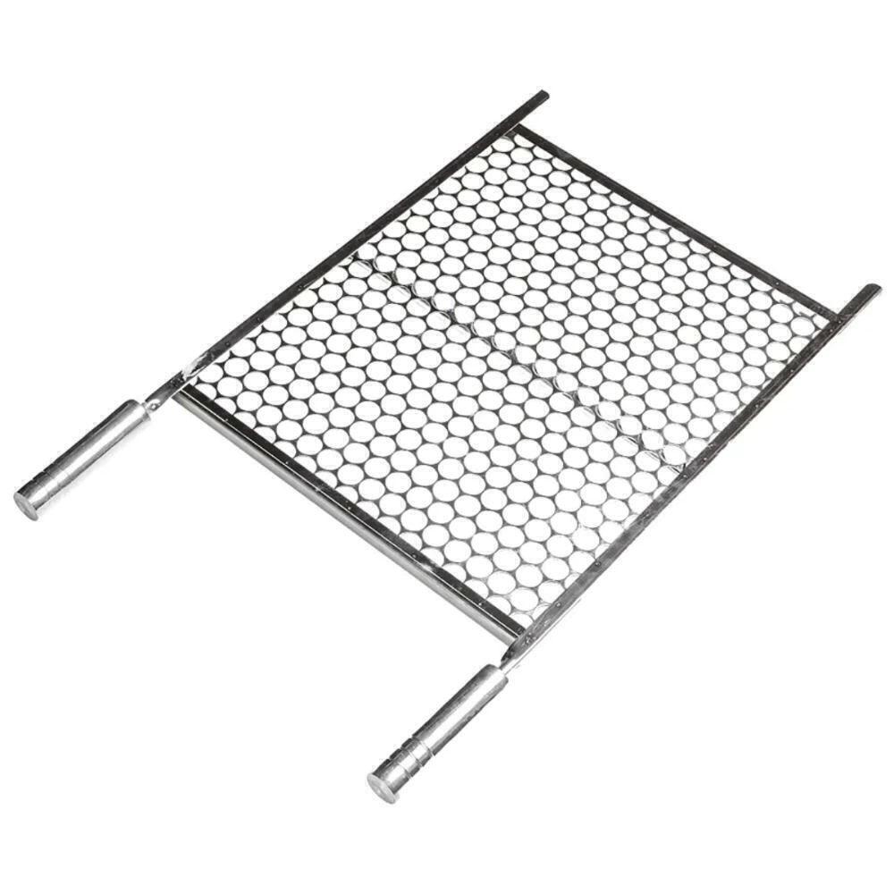 Grelha Plana Quadrada Em Tela Moeda Inox Com Cabos De Alumínio - Metalmig