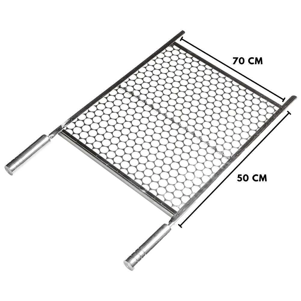 Seu formato plano e estrutura leve permite o uso em diversos tipos de churrasqueiras: pré-moldadas, de alvenaria ou móveis. Os cabos em alumínio proporcionam segurança térmica e firmeza durante o manuseio.