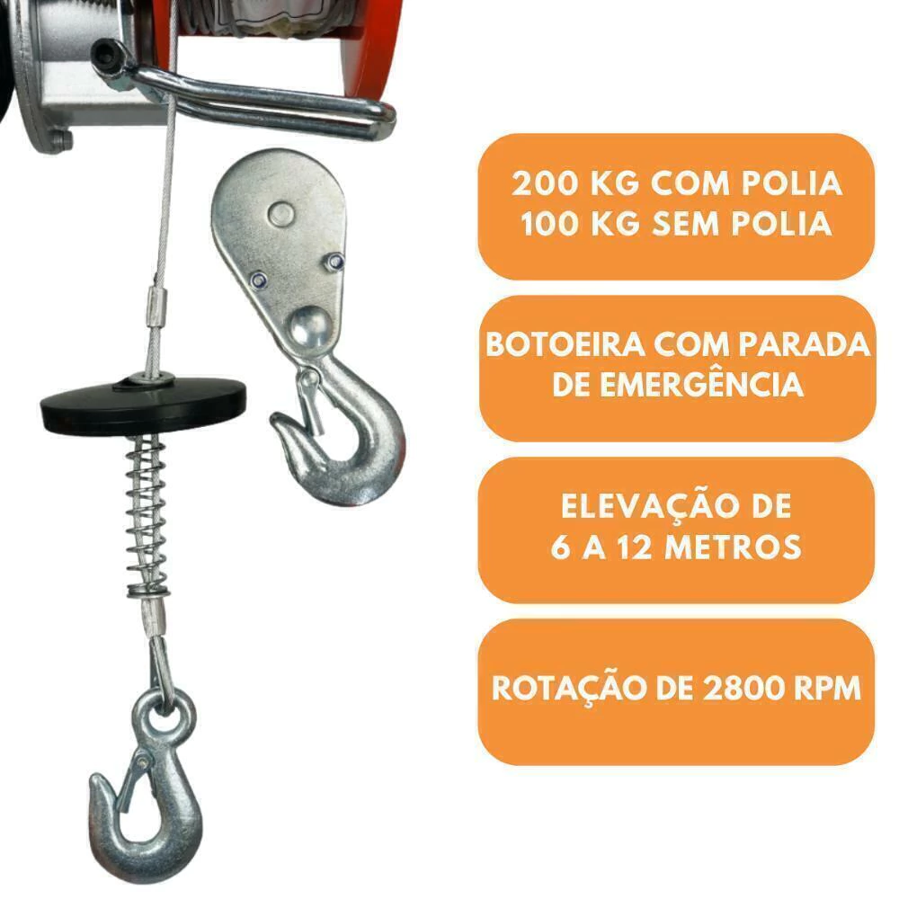 O Guincho Elétrico ELEV200 da Intech Machine foi desenvolvido para melhor execução do trabalho de elevação de cargas verticais em andaimes, poços, construções e oficinas, entre outros. Possui chapa de aço reforçado que protege seu mecanismo. O potente motor de 450W eleva pesos de até 200 Kg a uma altura de 6 metros, se usado com polia, e eleva pesos de até 100 kg a uma altura de 12 metros, se usado sem polia.