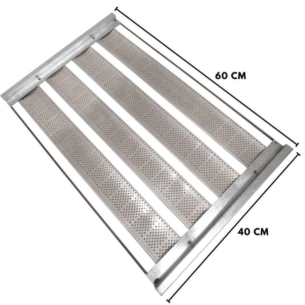 A Assadeira para pão francês ou salgado INNAL é feita em alumínio e possui 4 tiras com capacidade para até 20 pães de 50 gramas. O fundo da assadeira é feito de tela de alumínio perfurada, o que facilita o trabalho e a limpeza do produto.