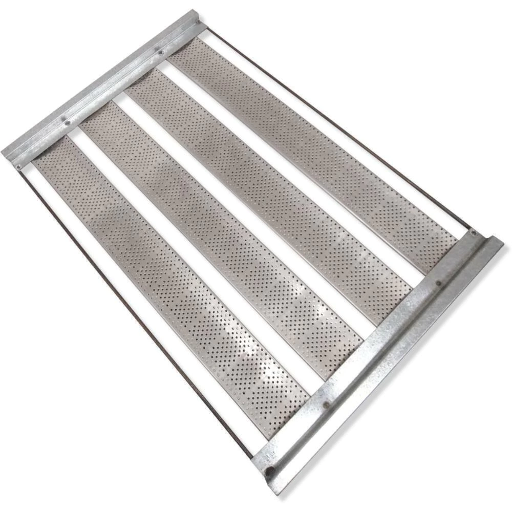 A Assadeira para pão francês ou salgado INNAL é feita em alumínio e possui 4 tiras com capacidade para até 20 pães de 50 gramas. O fundo da assadeira é feito de tela de alumínio perfurada, o que facilita o trabalho e a limpeza do produto.