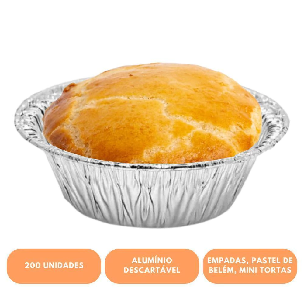 Forma descartável de alumínio para empadas pequenas, embalagem com 200 unidades. Própria para empadas, pastel de belém, bolinhos, mini tortas, quindim, etc.