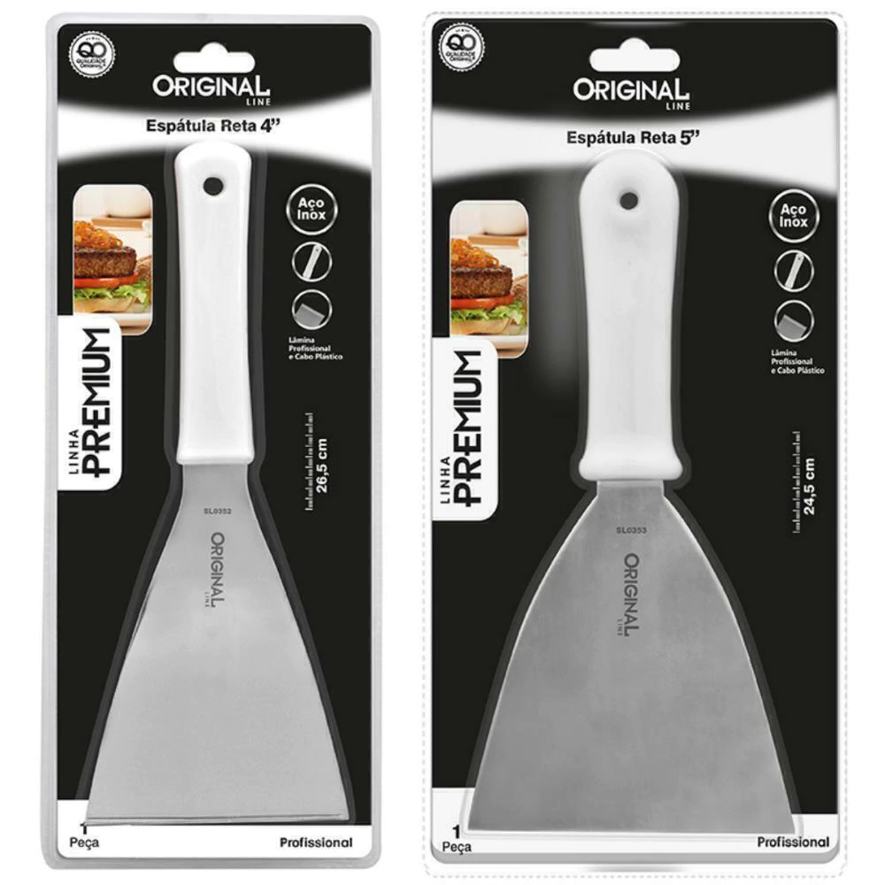 A Espátula Reta da linha Premium é ideal para o preparo de lanches saborosos e também para cortar pizzas ou demais alimentos. Maior resistência e durabilidade do fio e alto poder de corte.
