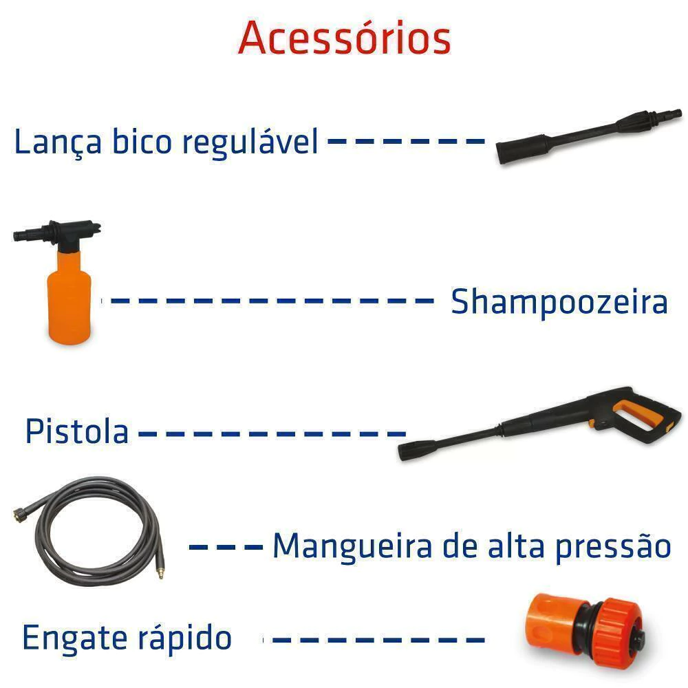 – Lança Regulável – Permite que você ajuste o jato para leque (varreduras) ou concentrado (sujeiras profundas)