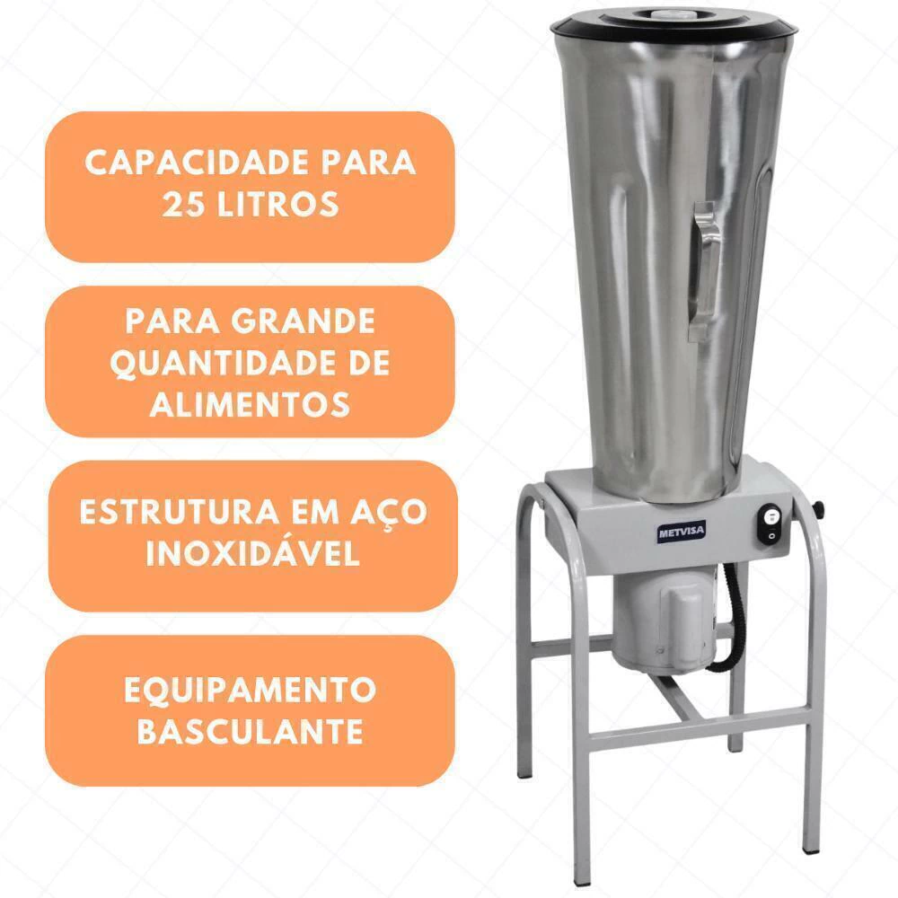 Liquidificador Basculante 25 Litros 1/5 CV Em Inox - Metvisa