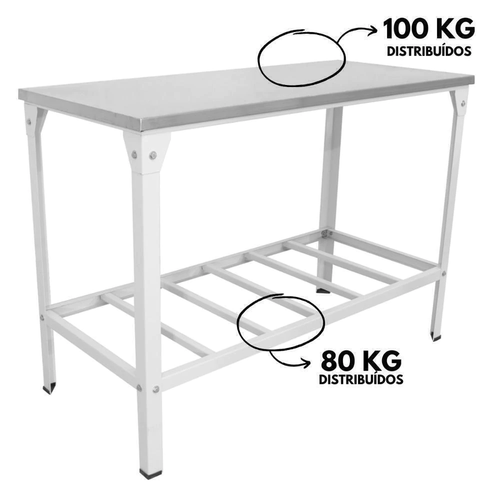 Capacidade do Tampo: aproximadamente 100 Kg distribuídos